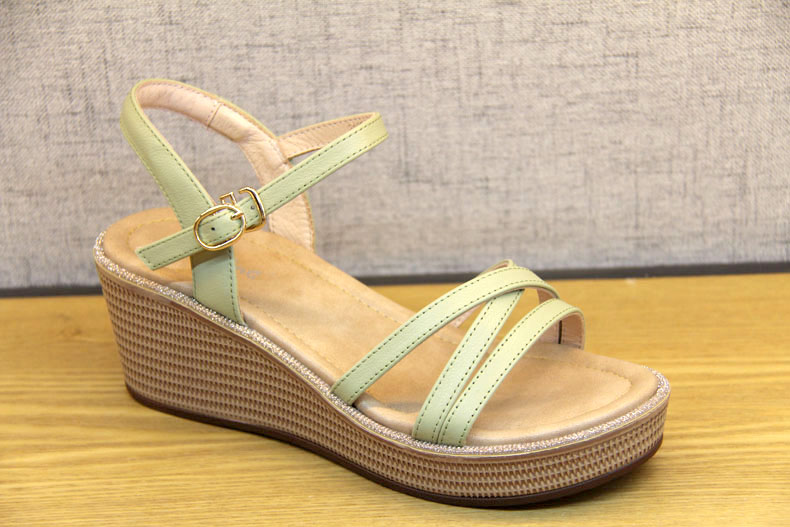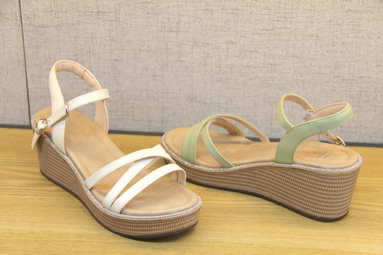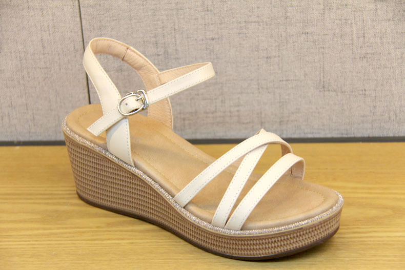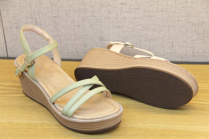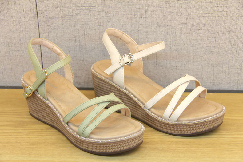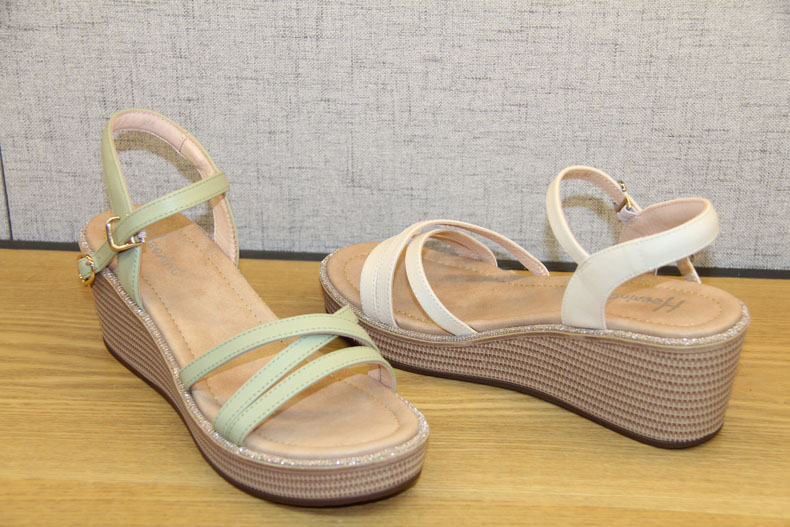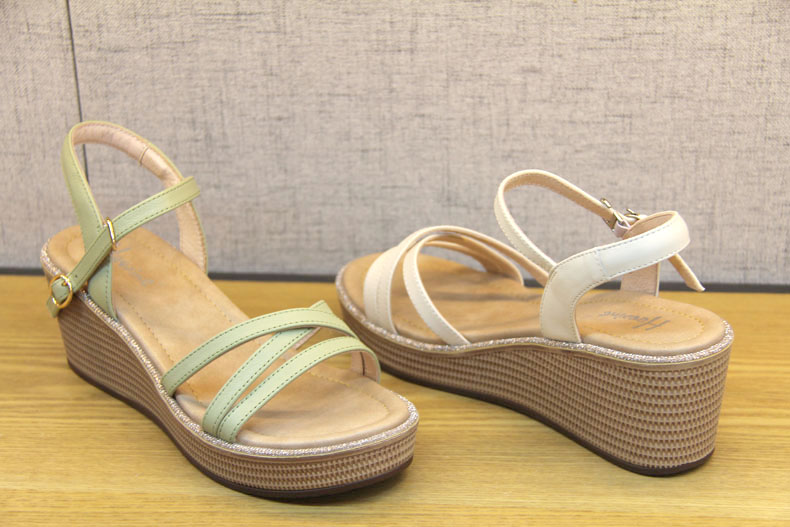 豪行夏新款21298398增高中跟凉鞋女坡跟高跟厚底一字扣露趾轻女鞋 专柜正品 更高6.5CM