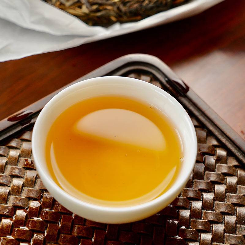 此茶为张老师十年前从朋友那淘来的几件茶,在当时喝就已经让人眼前一亮了,当时也是因为看好后期的转化把它收回来了,就这么一直存到了第十个年头。说实在的,就连我们自己都没想到,十年后的转化,竟能惊艳到这个程度!茶汤里的那份醇厚,那股力道,真的是时间给的礼物!