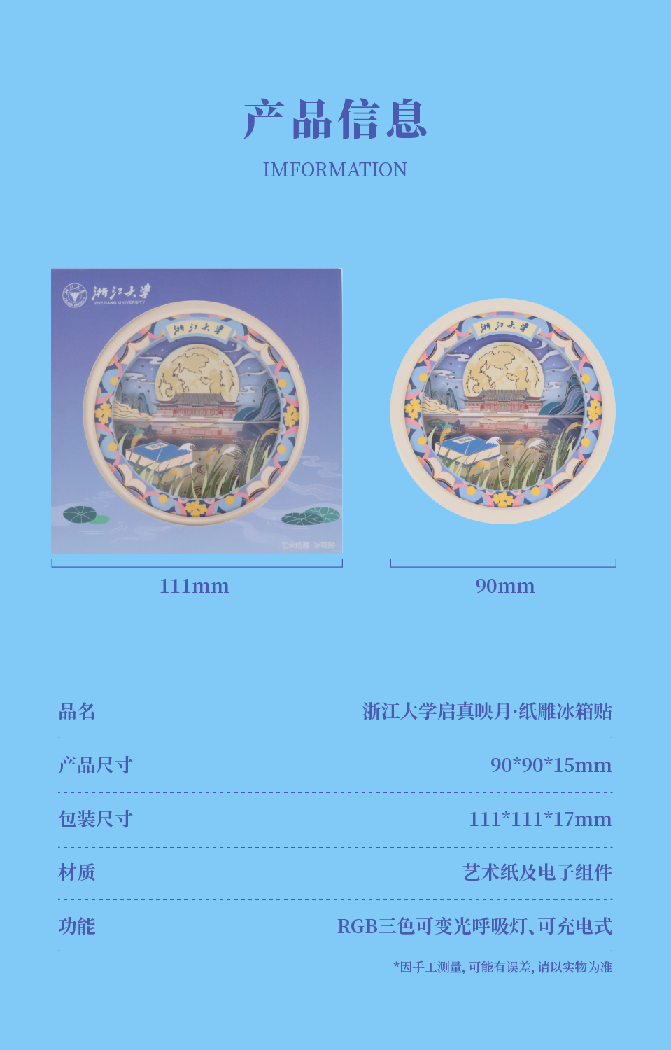 【浙大文创】浙江大学启真映月纸雕冰箱贴