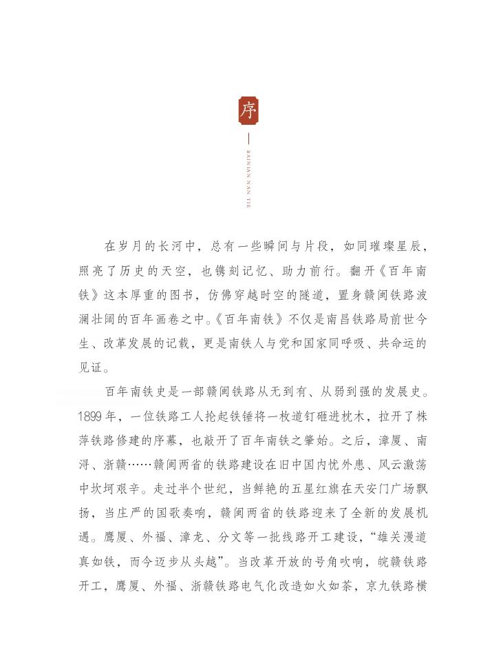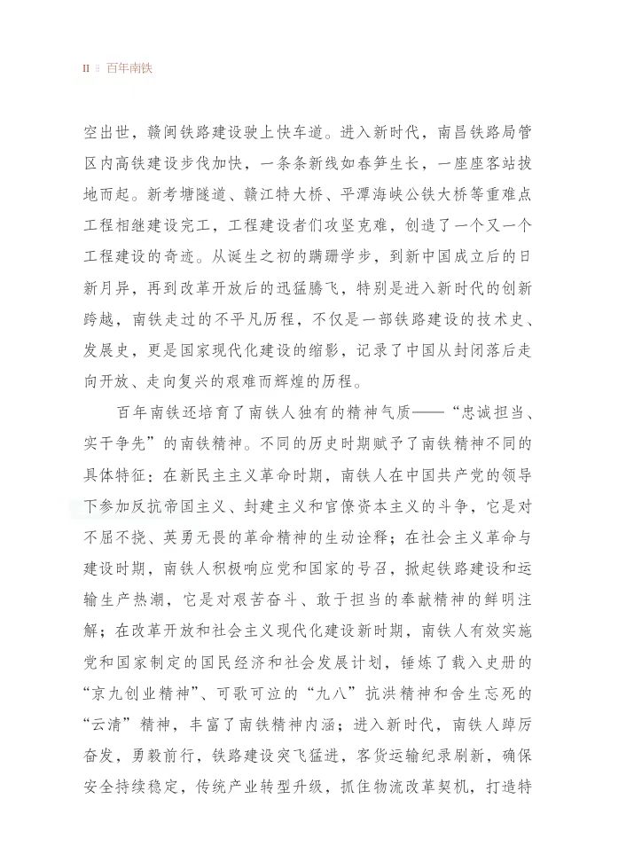 。在历史的长河里,总有一些史实经历时间的考验,具有恒久的意义,并成为指引历史发展方向的标志。而这一时间,因与特定的事件联系在一起,才具有独特的价值。本书稿记录了南铁近百年的历史,共包括了六个篇章的内容:第一篇发展的历程、第二篇日新月异、第三篇扬帆起航、第四篇应运而生、第五篇山海宏图、第六篇强局建设。记述了南铁的昨天、今天、明天,这是一首历史的壮歌