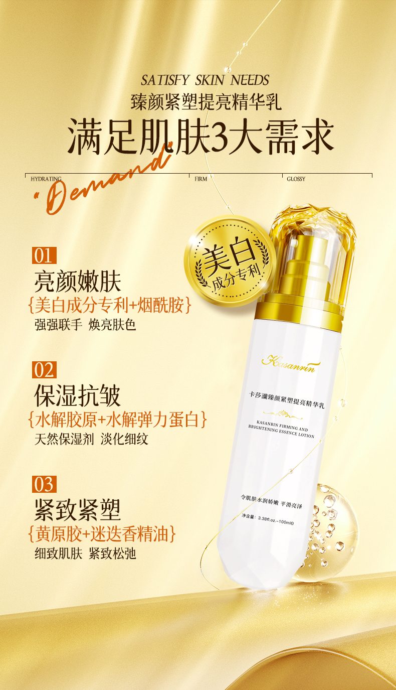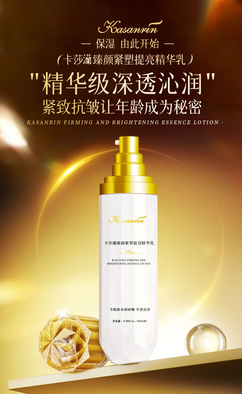 卡莎灡臻颜紧塑提亮精华乳,紧致肌肤,淡化细纹,提亮肤色,保湿滋润。