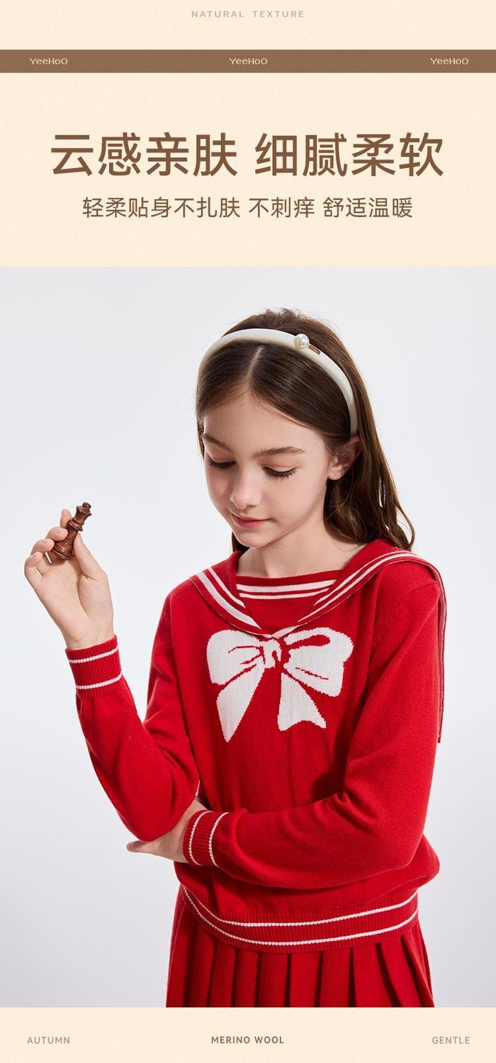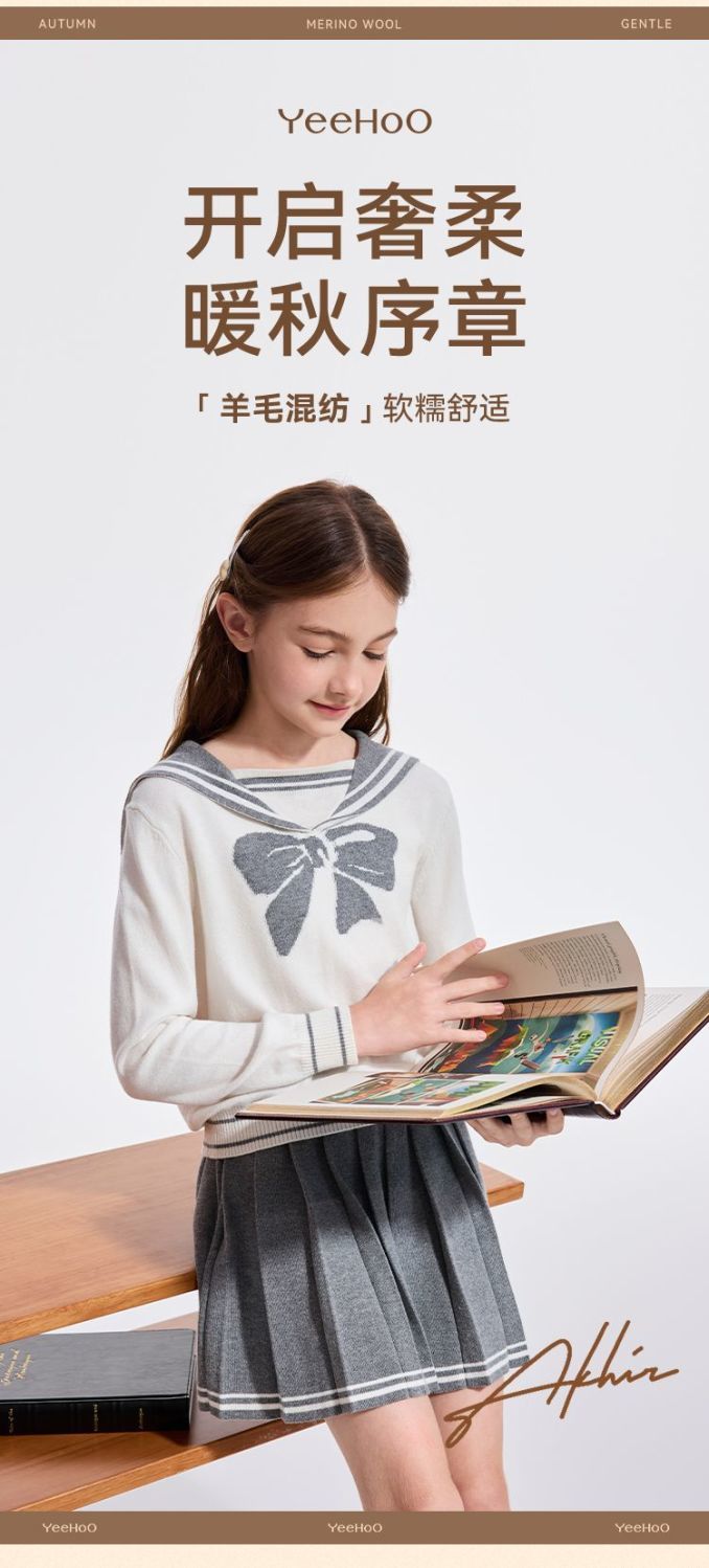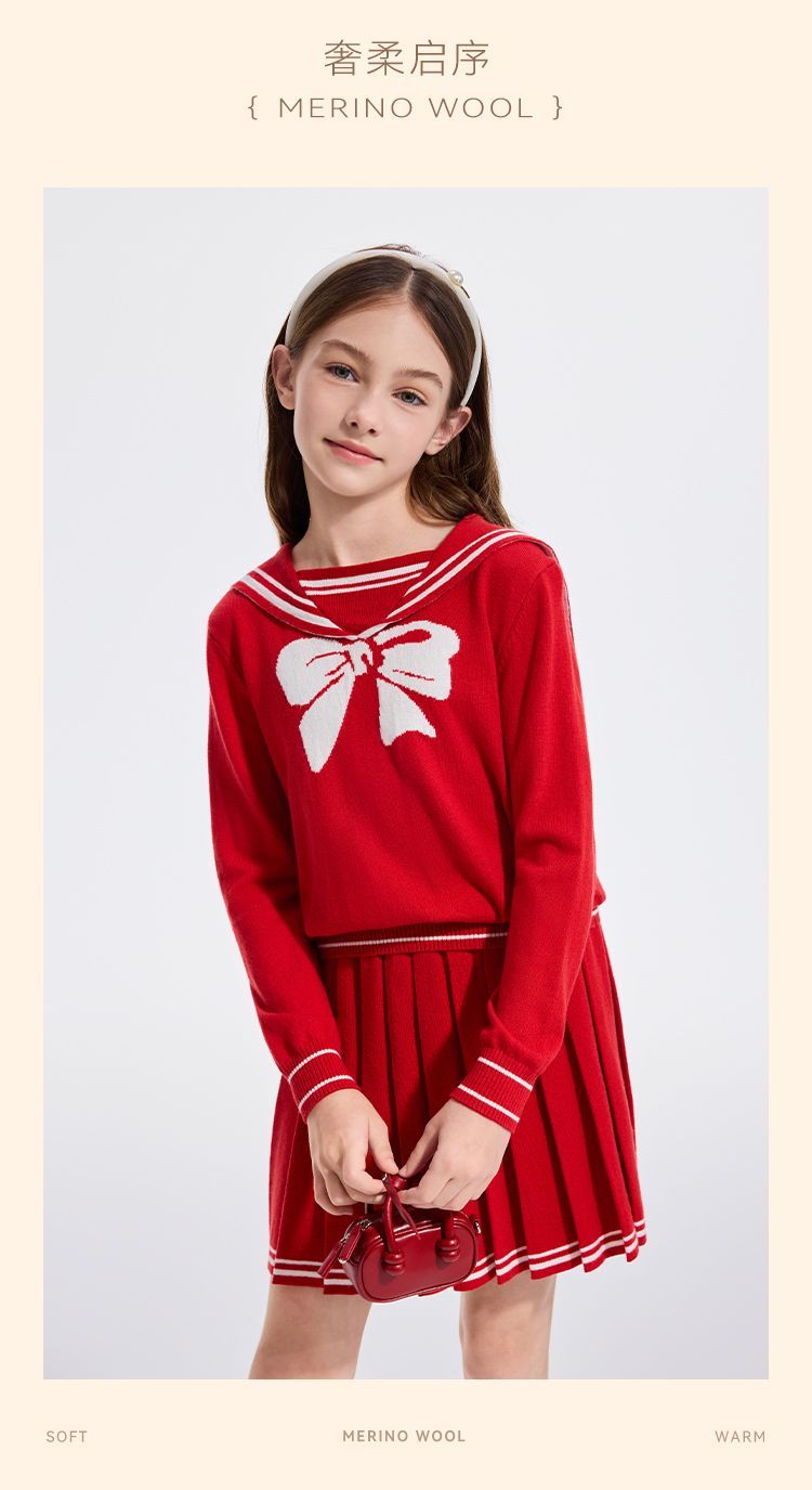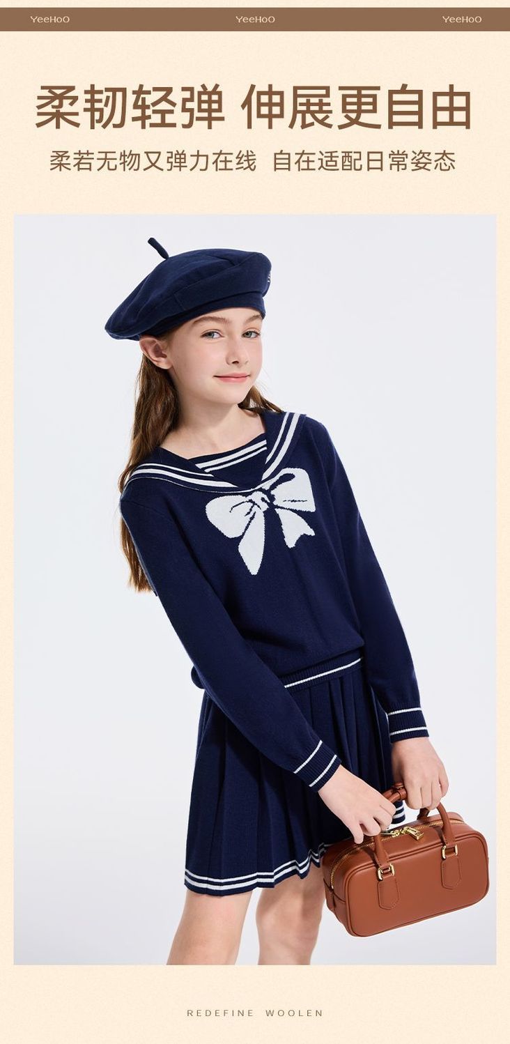 【英氏】【110-170】女童含羊毛保暖时尚套装