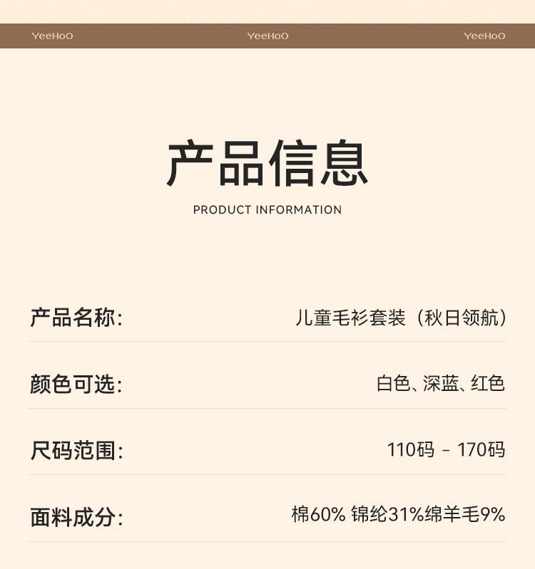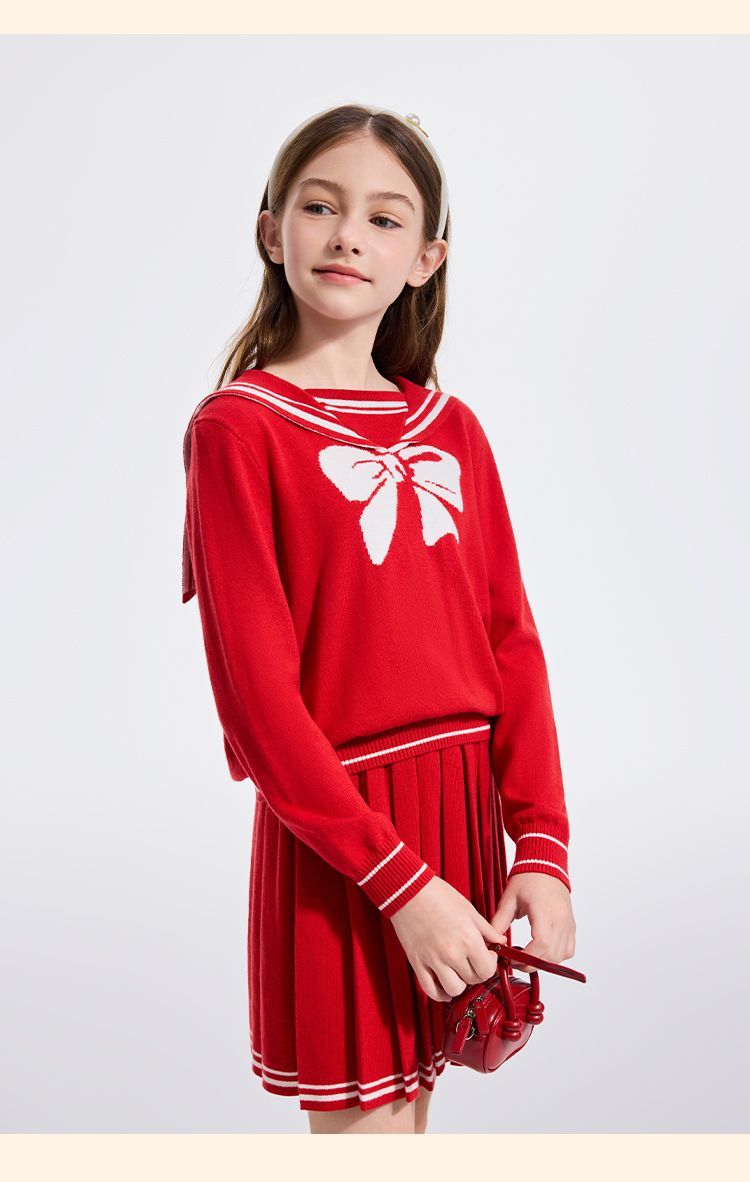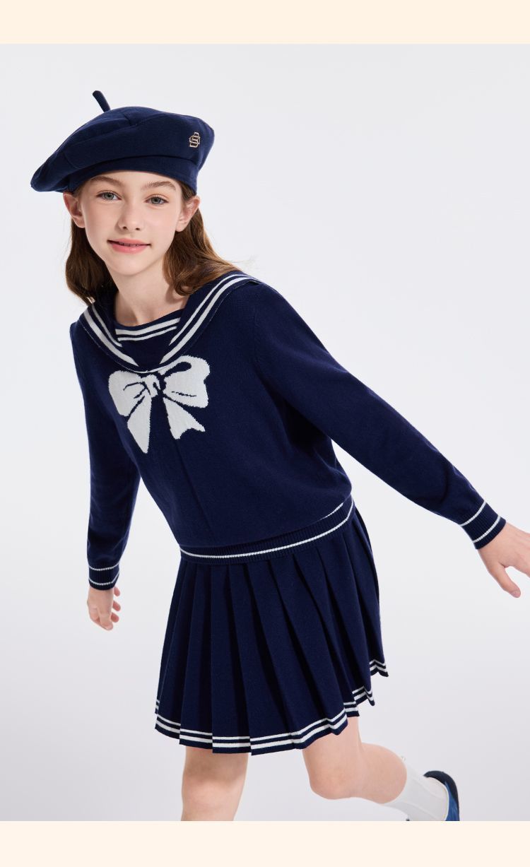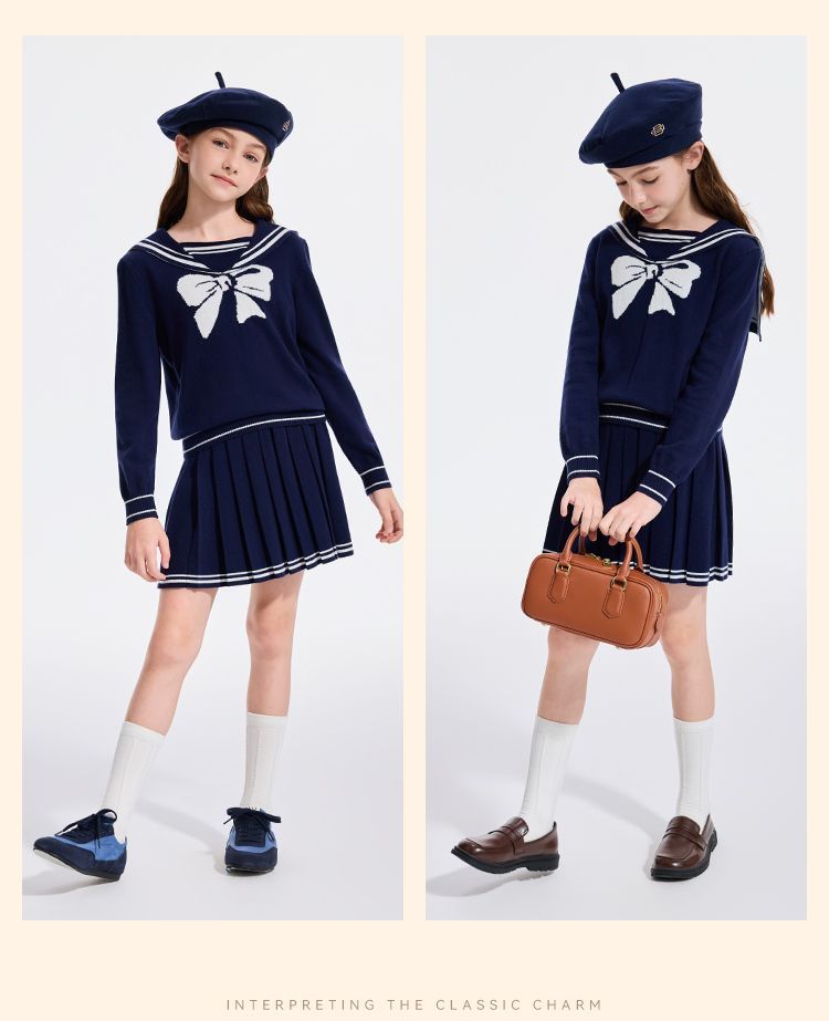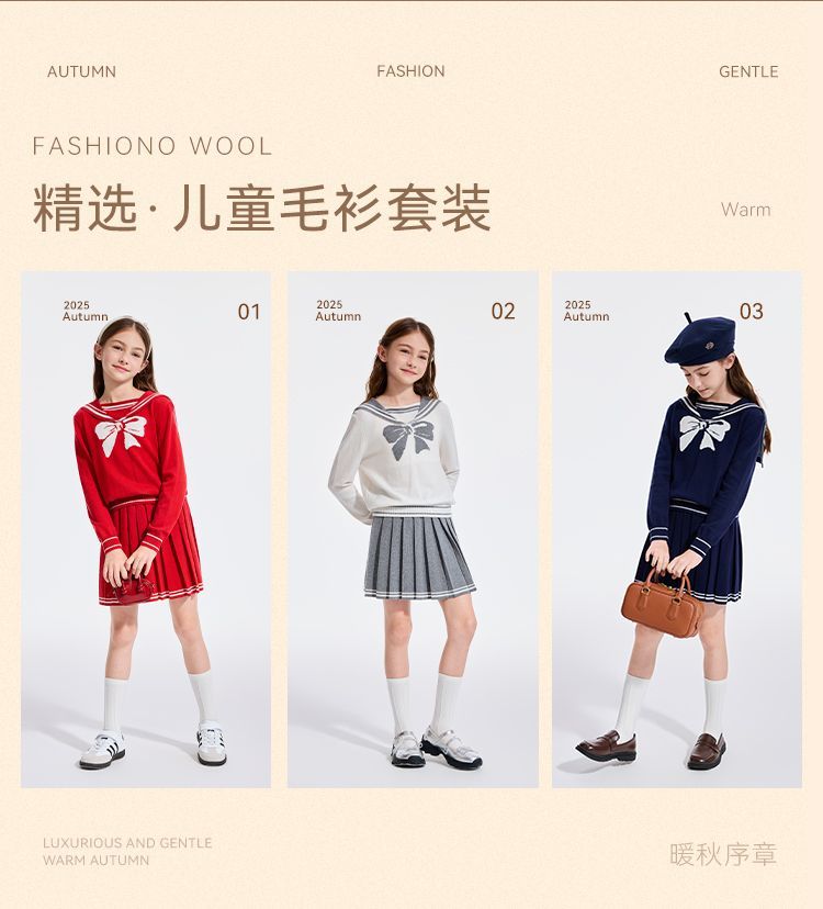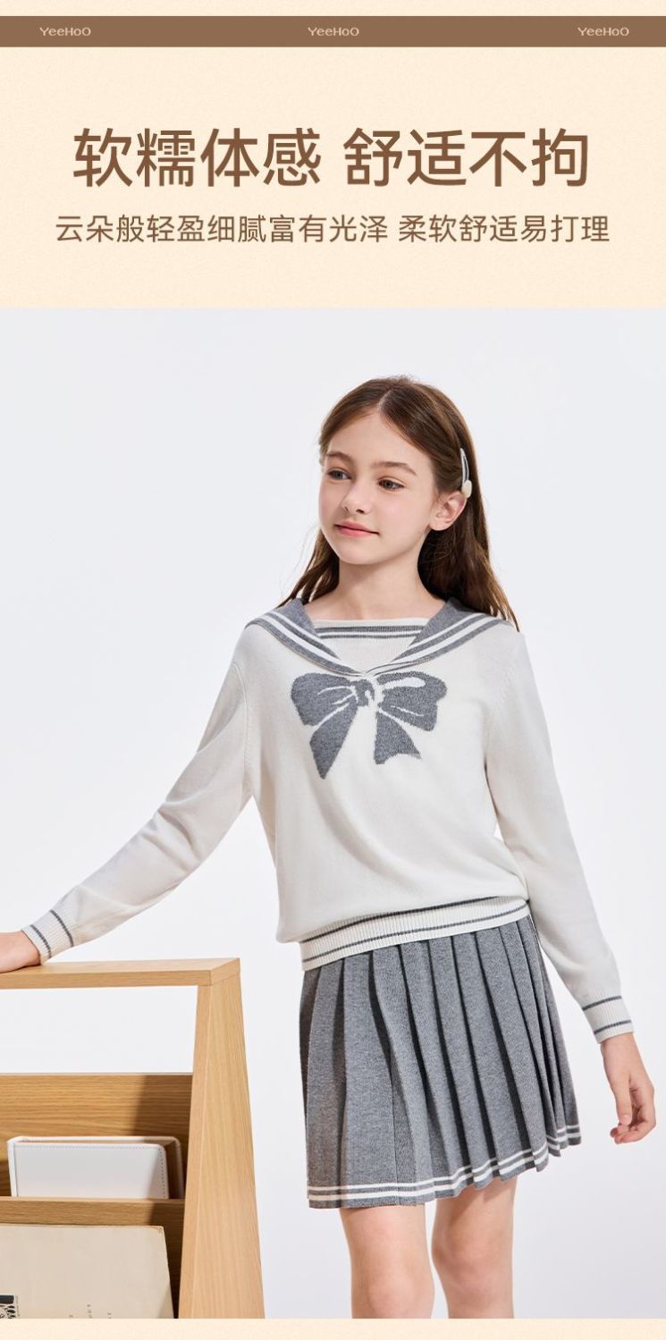 【英氏】【110-170】女童含羊毛保暖时尚套装