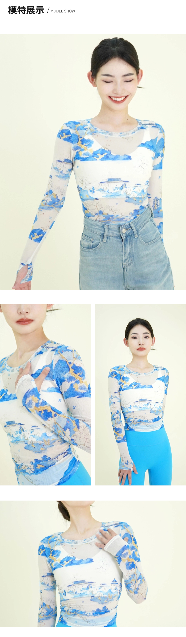 I‘d爱帝女士国风网纱抽褶长袖衫外搭罩衫