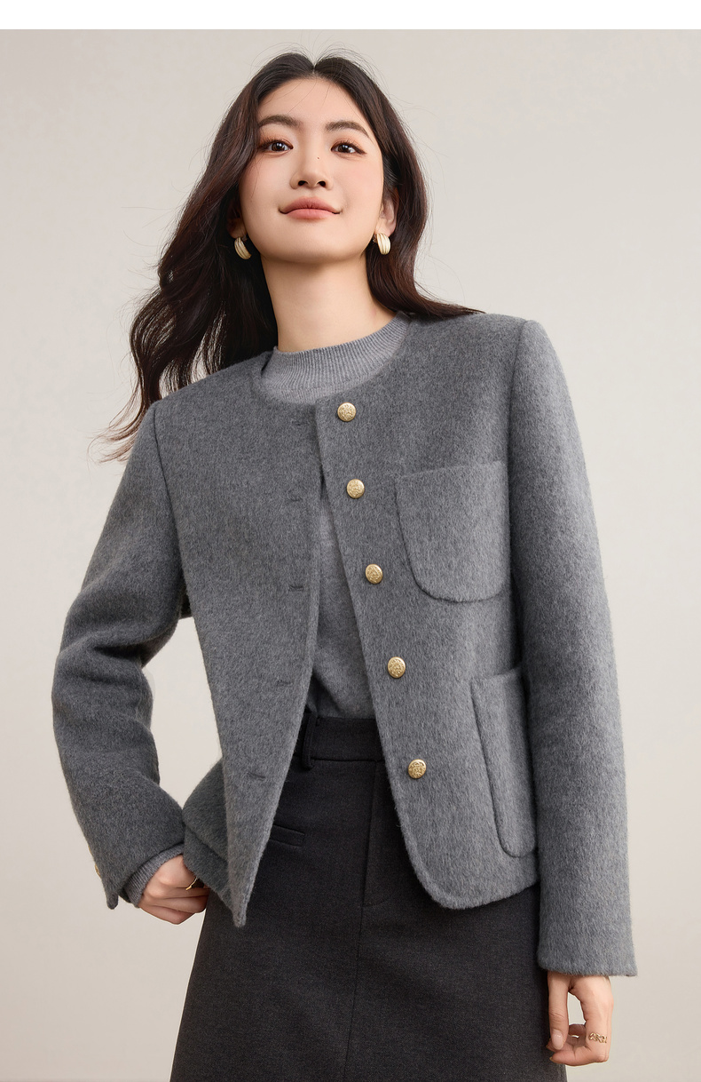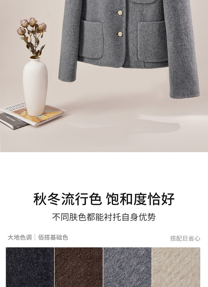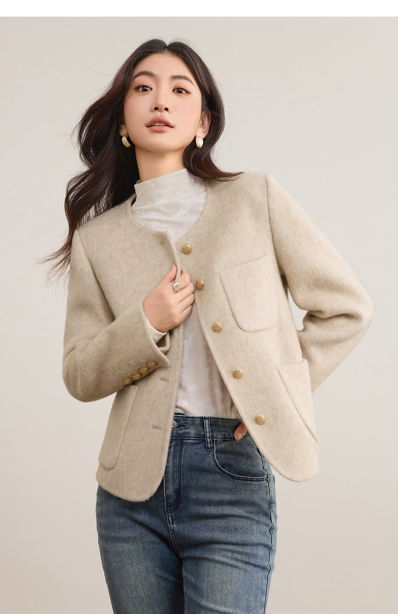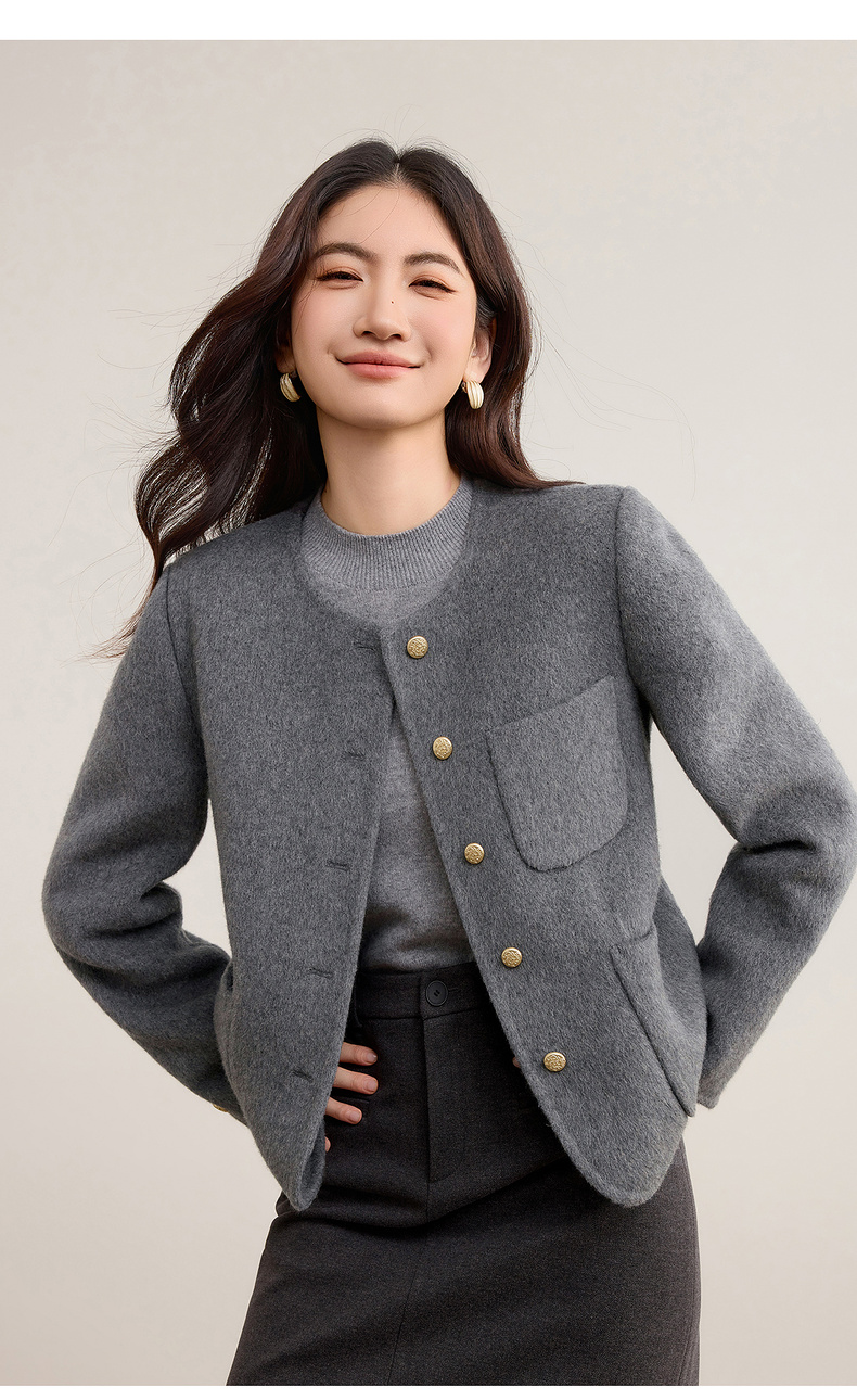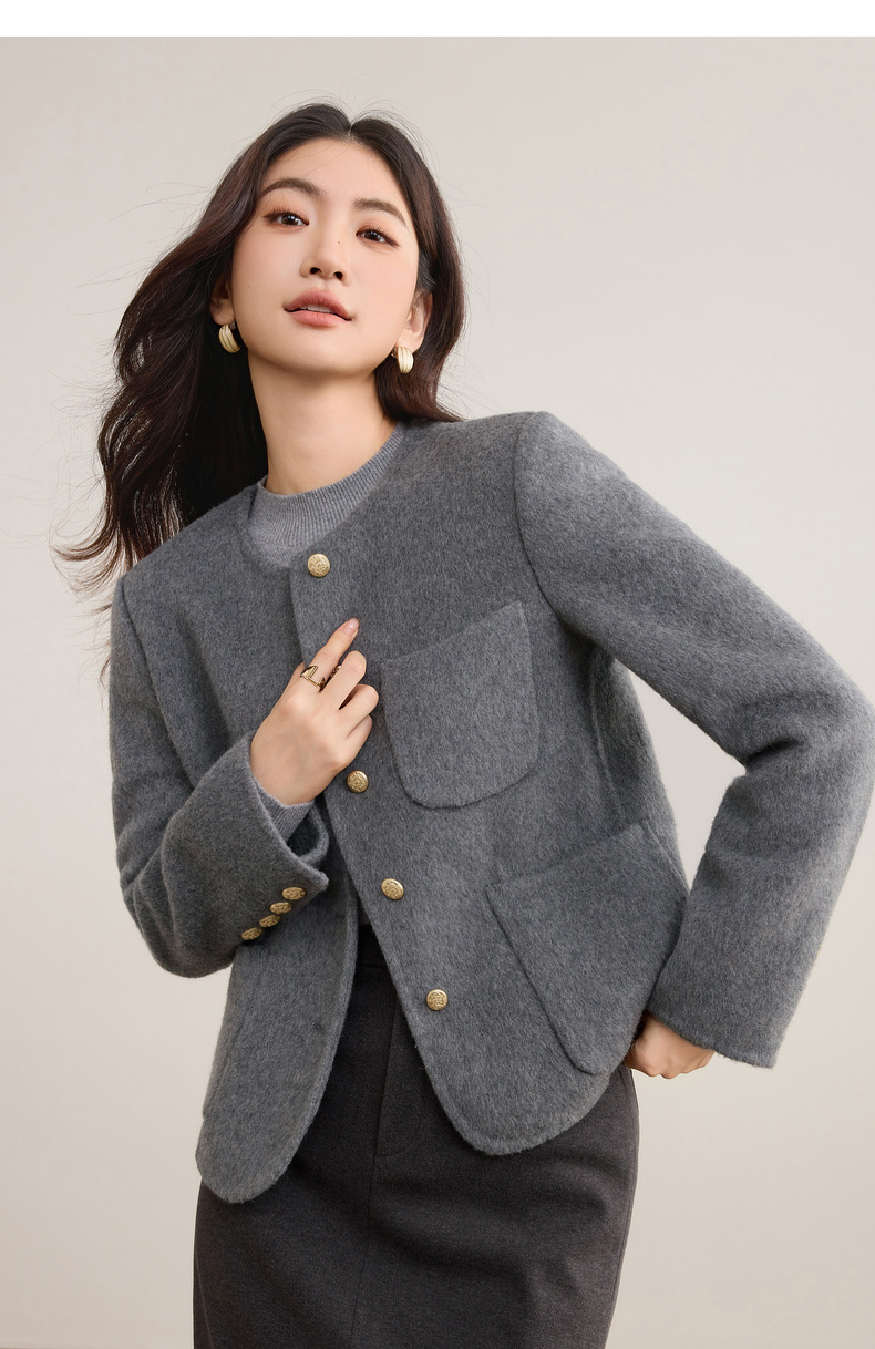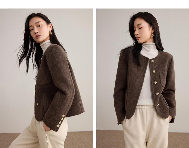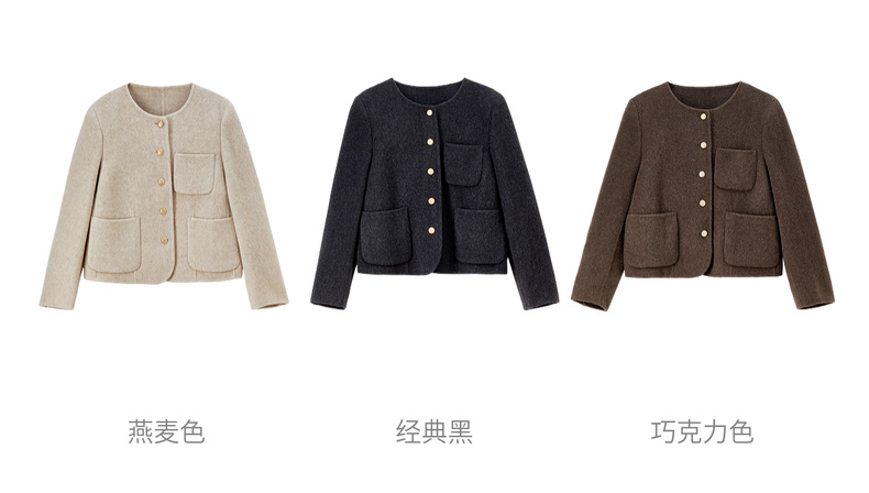 【内购】【绵羊毛】多色可选轻奢通勤圆领撞色金属扣保暖厚双面呢短外套-W54OG8767