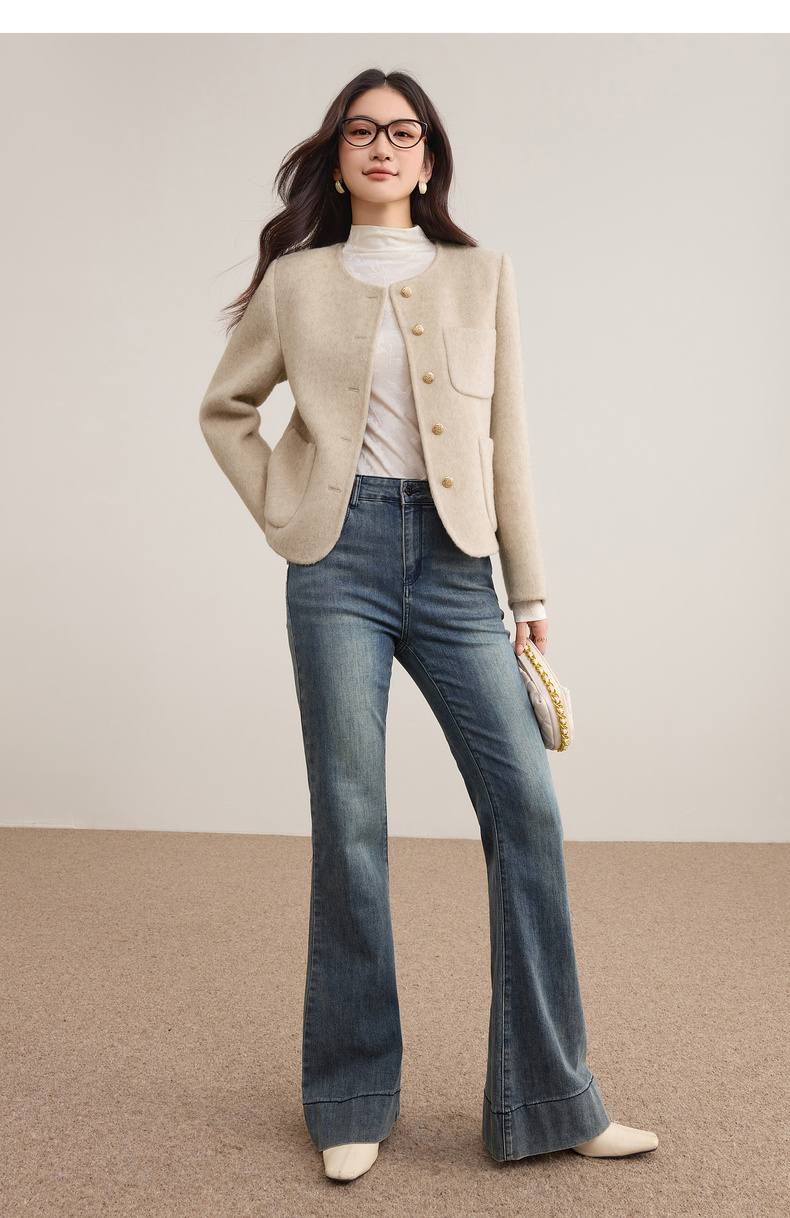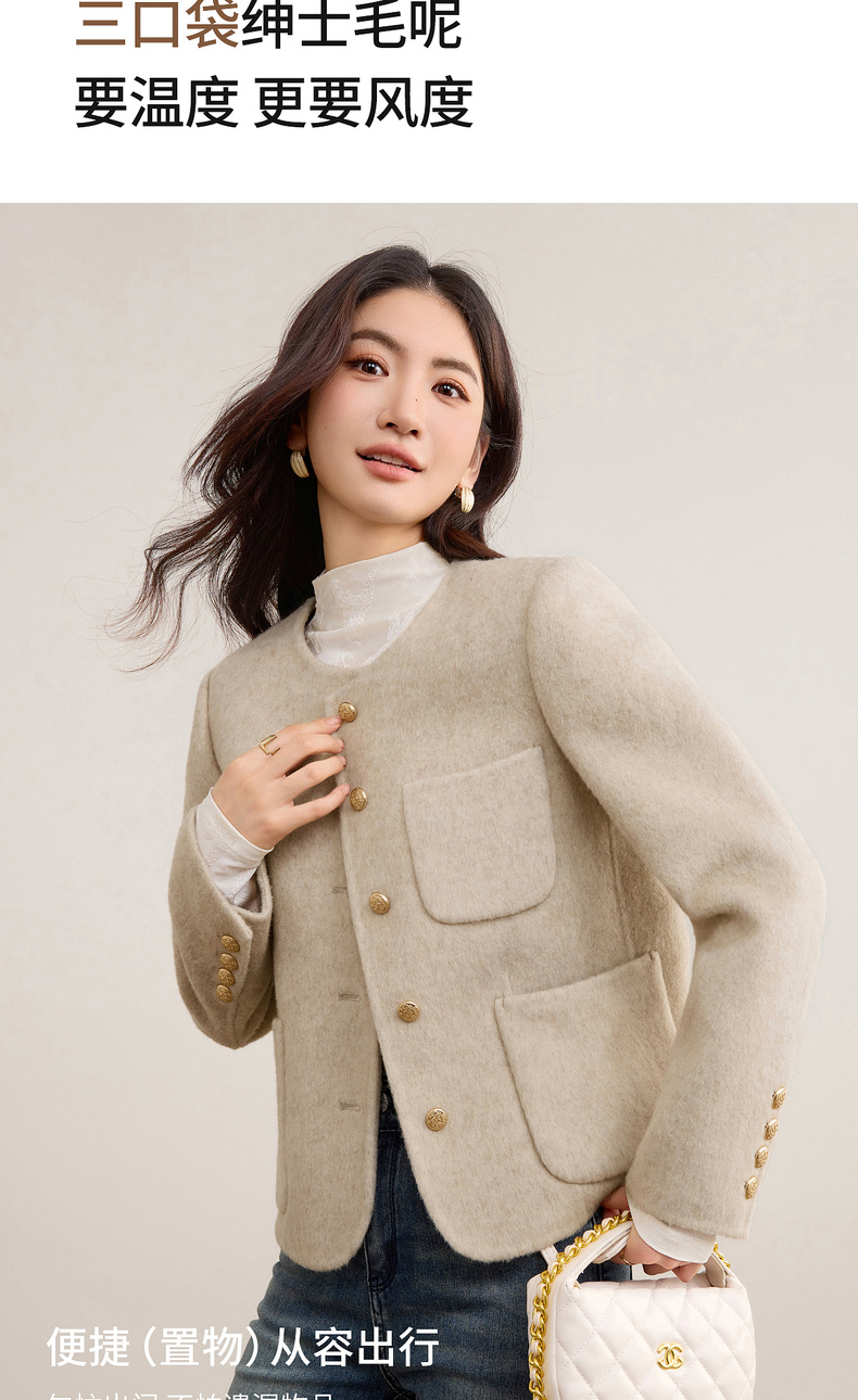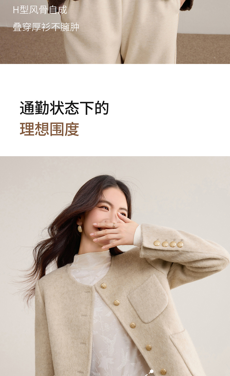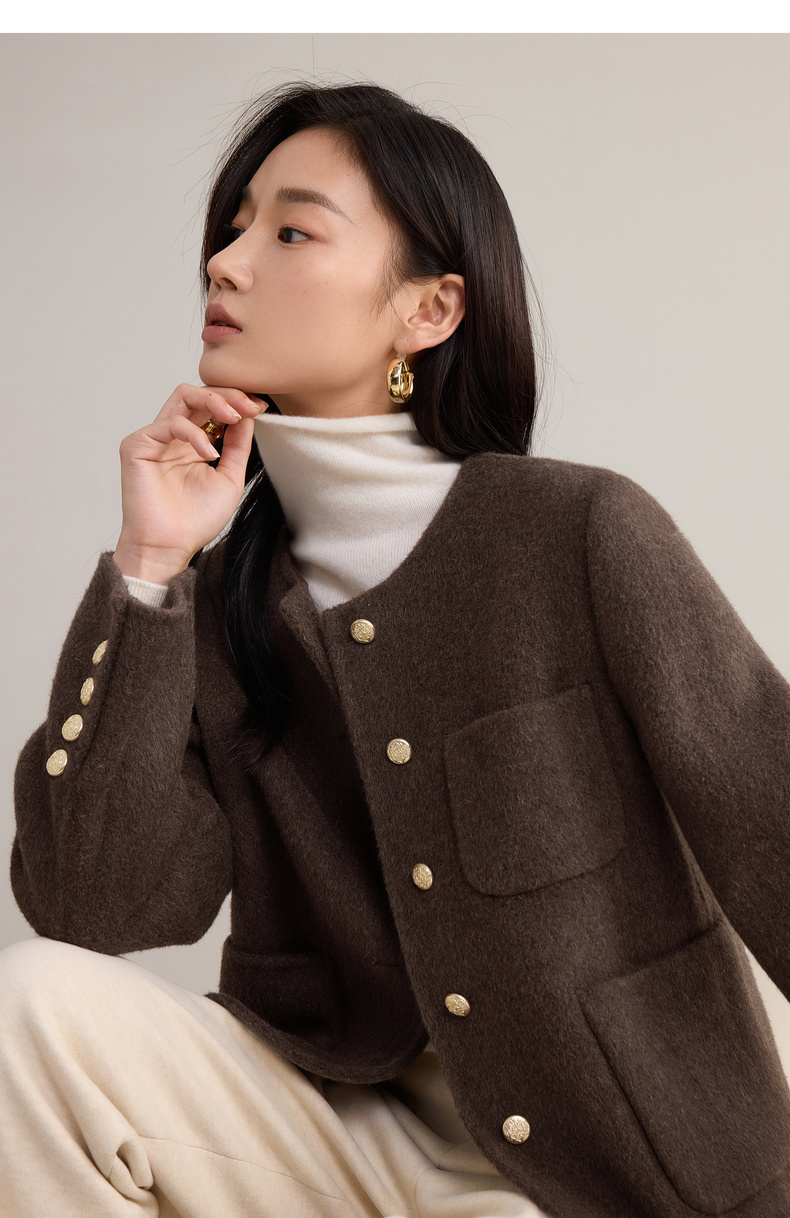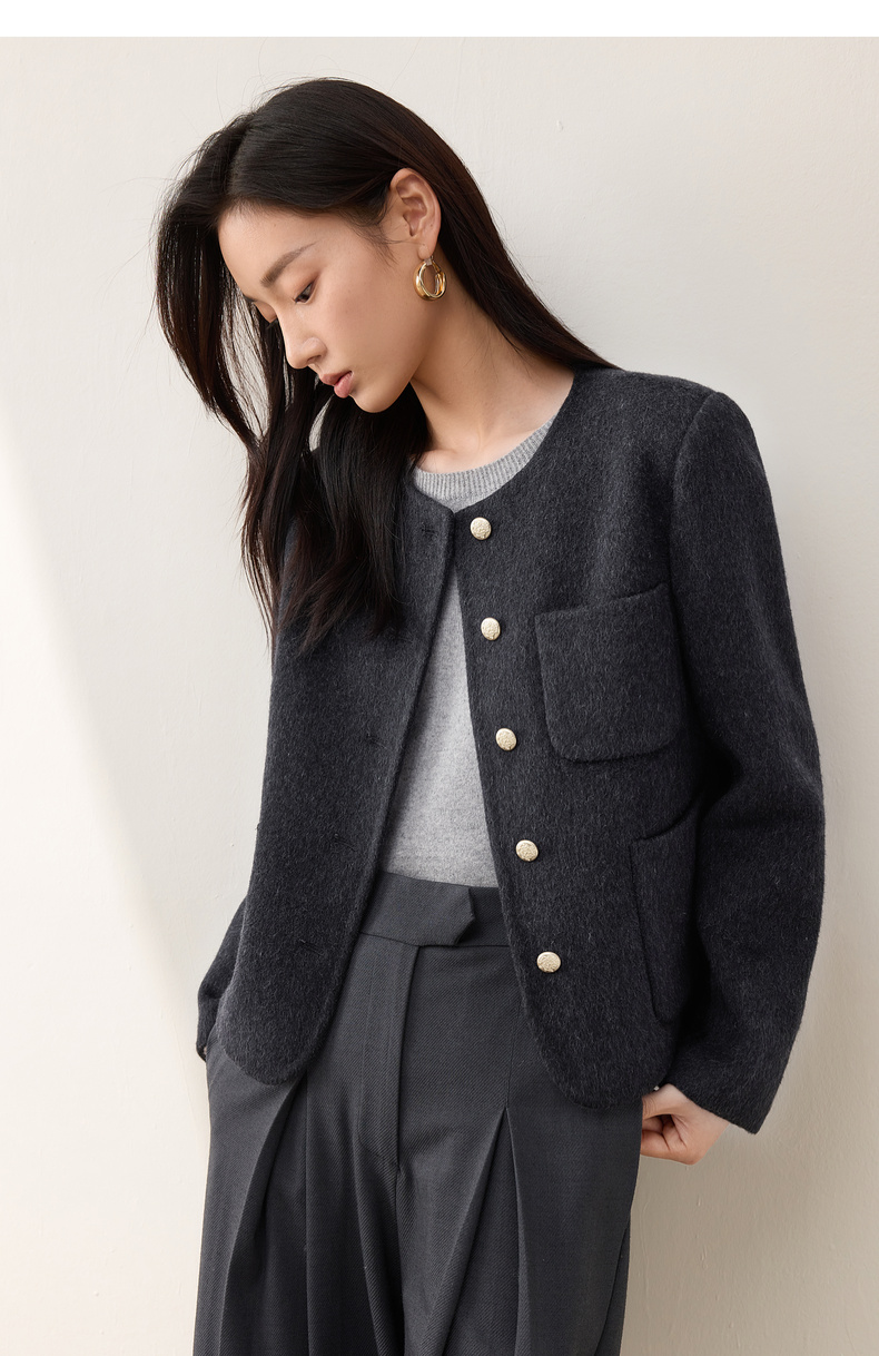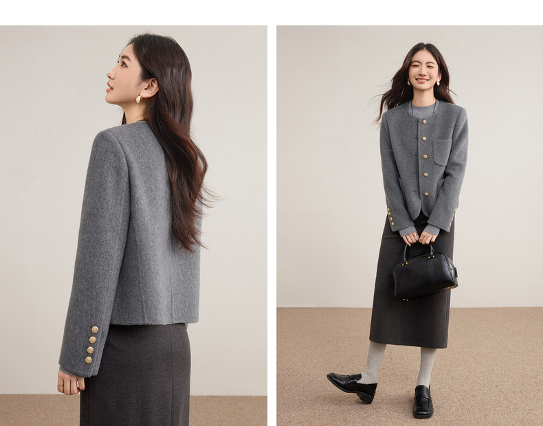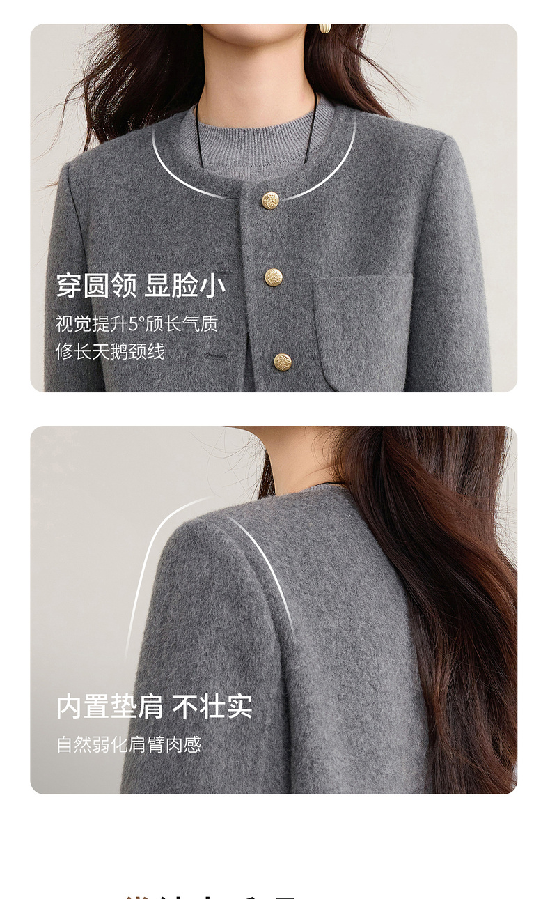 【内购】【绵羊毛】多色可选轻奢通勤圆领撞色金属扣保暖厚双面呢短外套-W54OG8767