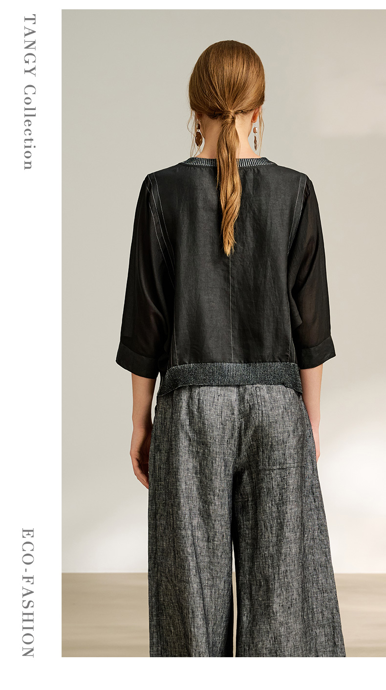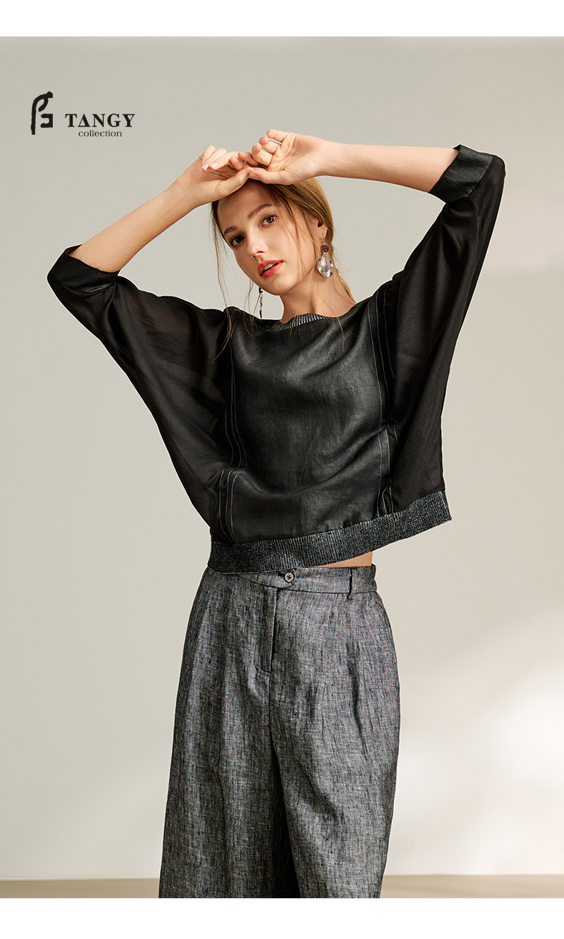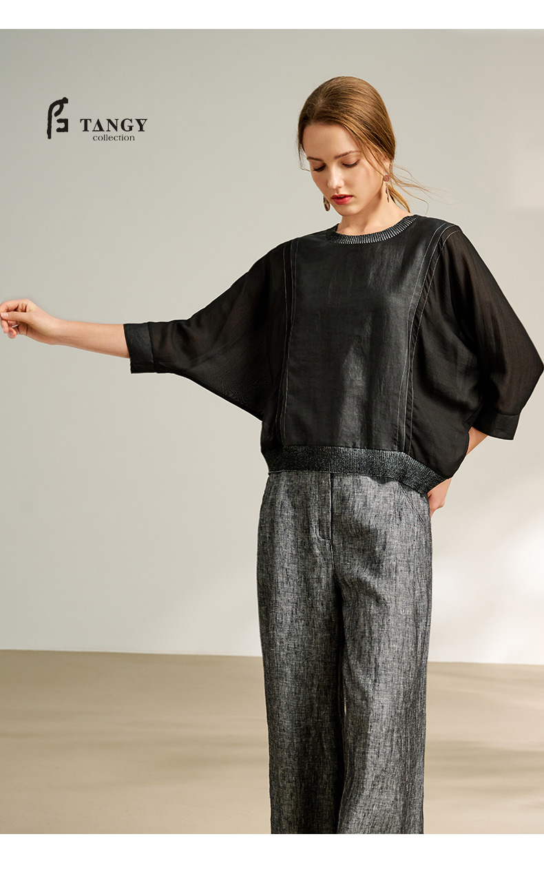 TANGY Collection/2025天意精品春季新品中国风女士莨绸T恤