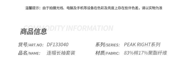 匹克2023年秋冬季新款PEAK RIGHT系列情侣款连帽长袖套装DF133040