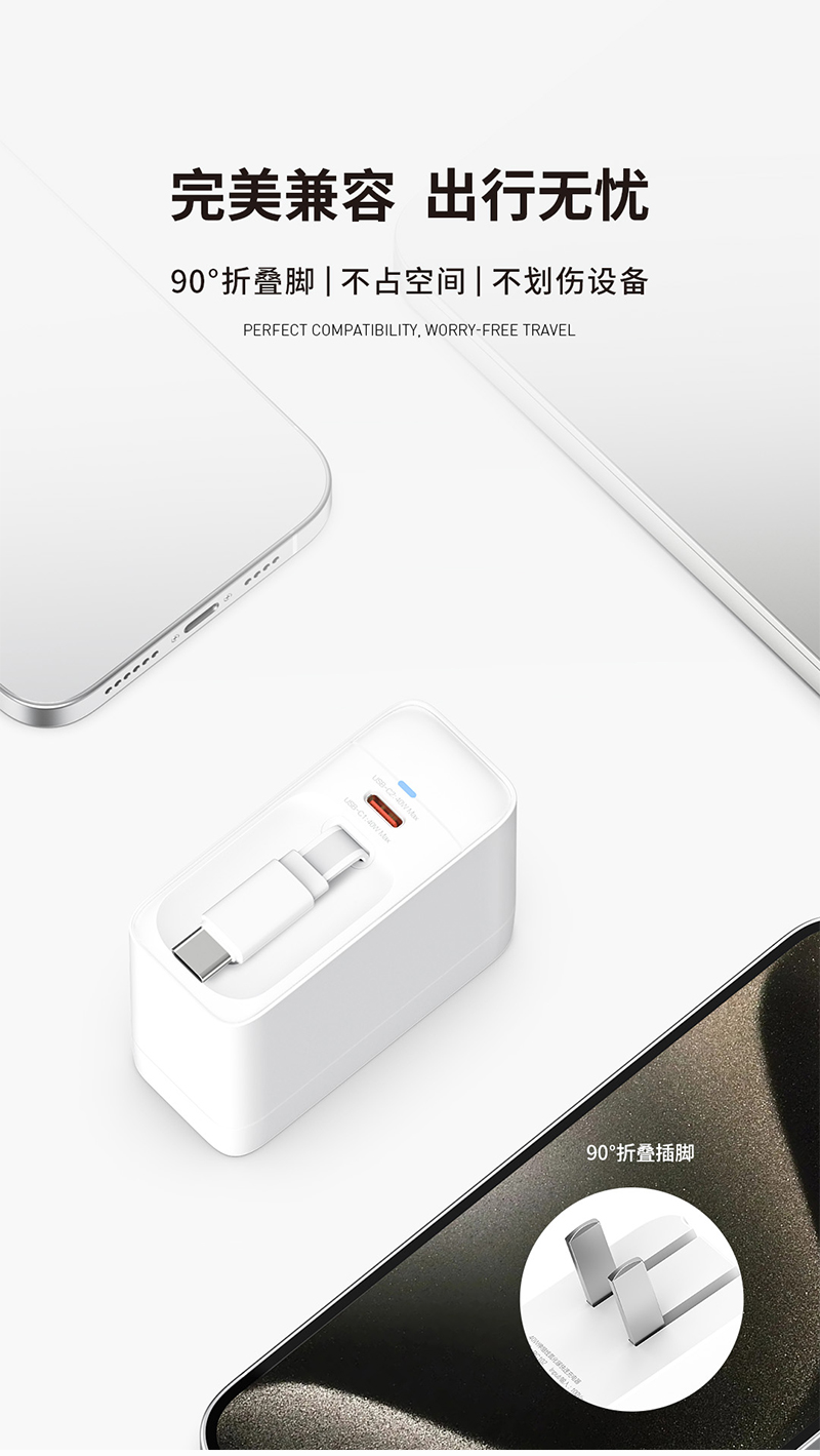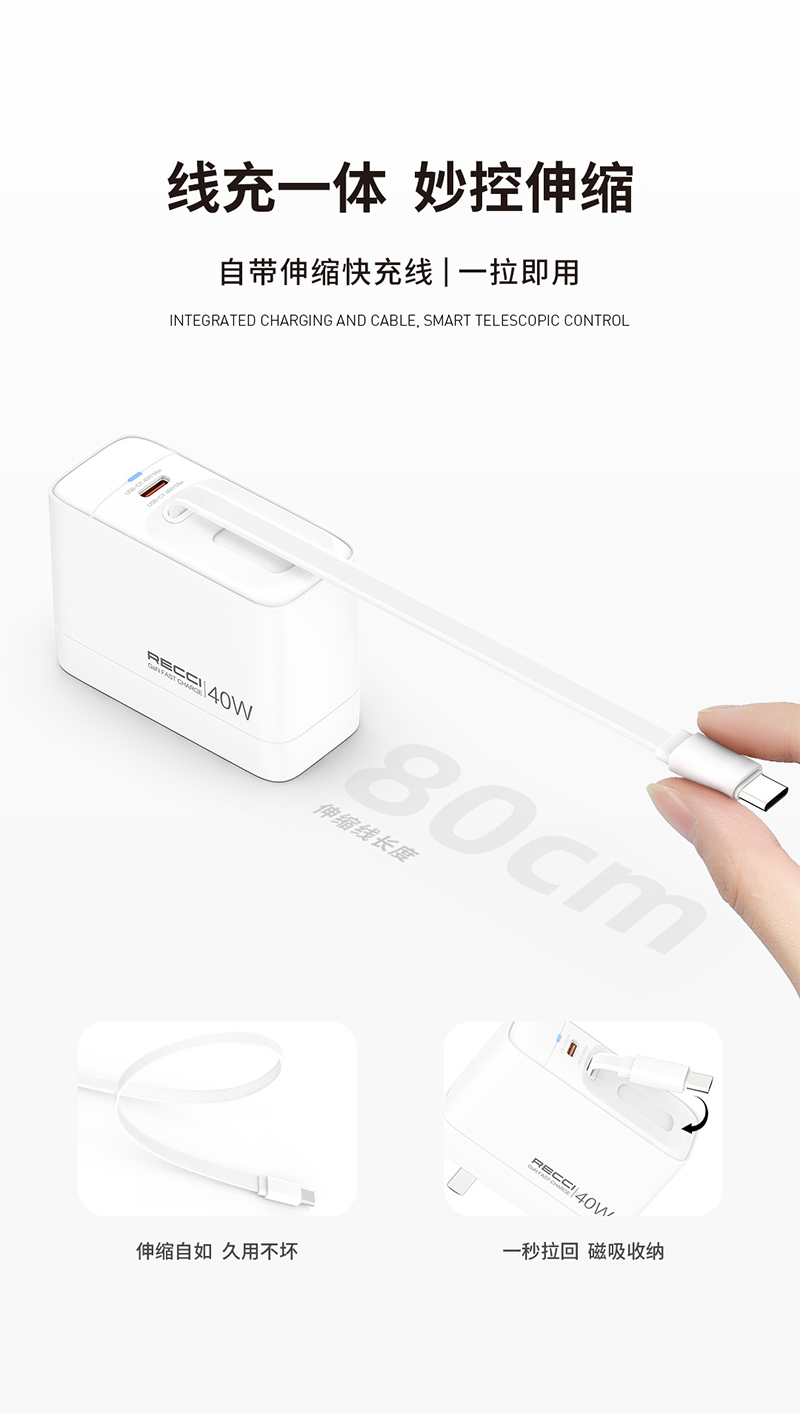 RECCI 40W伸缩线氮化镓快速充电器