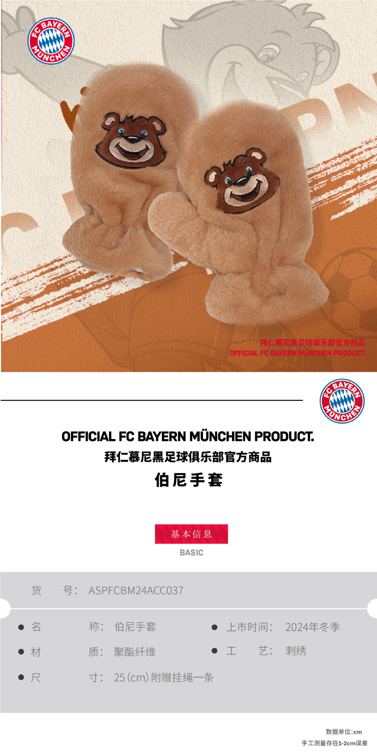 【官方正版】拜仁慕尼黑足球俱乐部|berni保暖毛绒手套球迷周边服饰