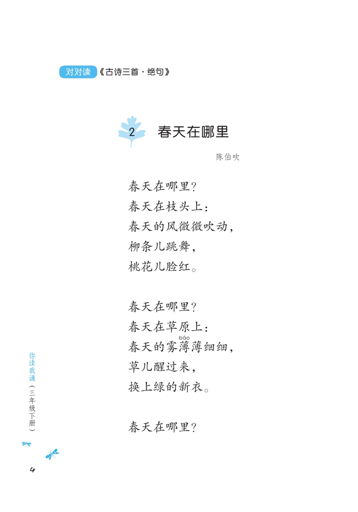 《你读我诵》中,有“你问我答读”“情境赏析读”“写法提示读”等诵读方法,让我们和孩子一起来诵读吧!