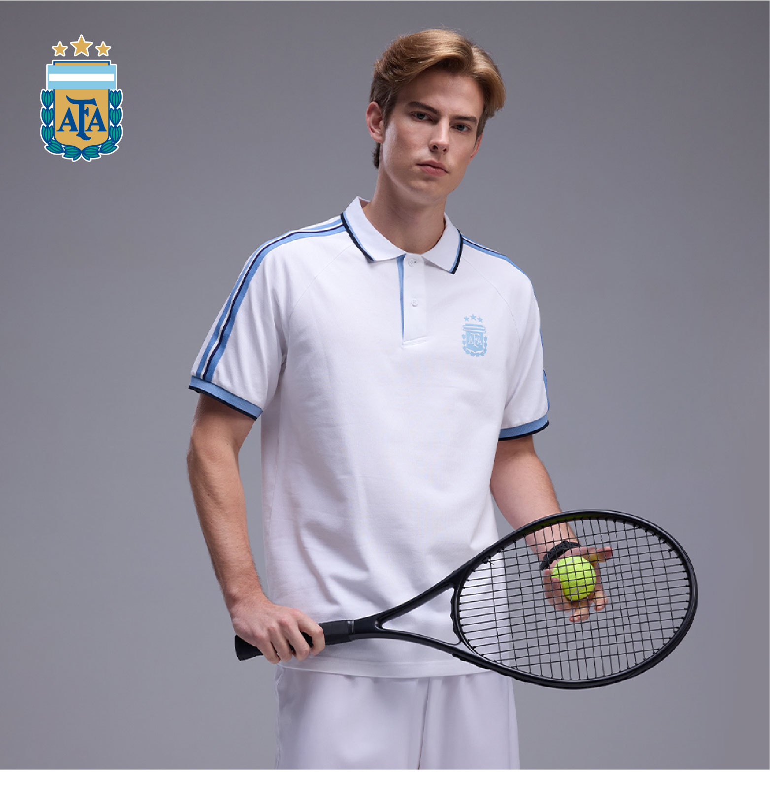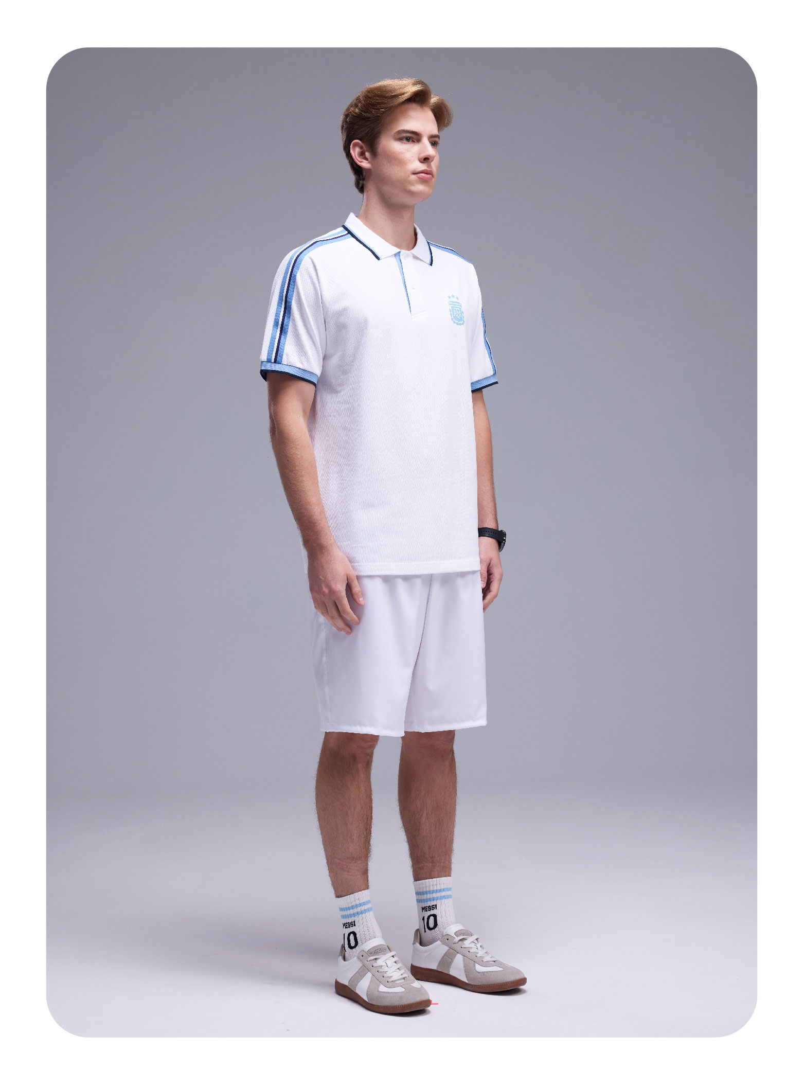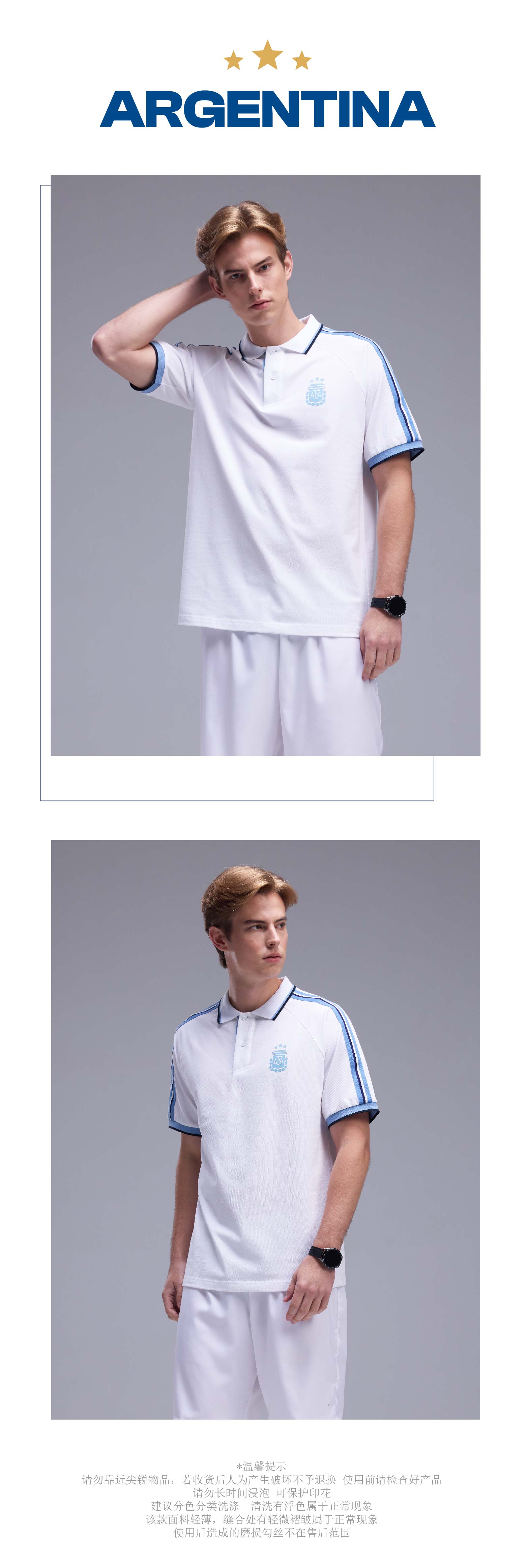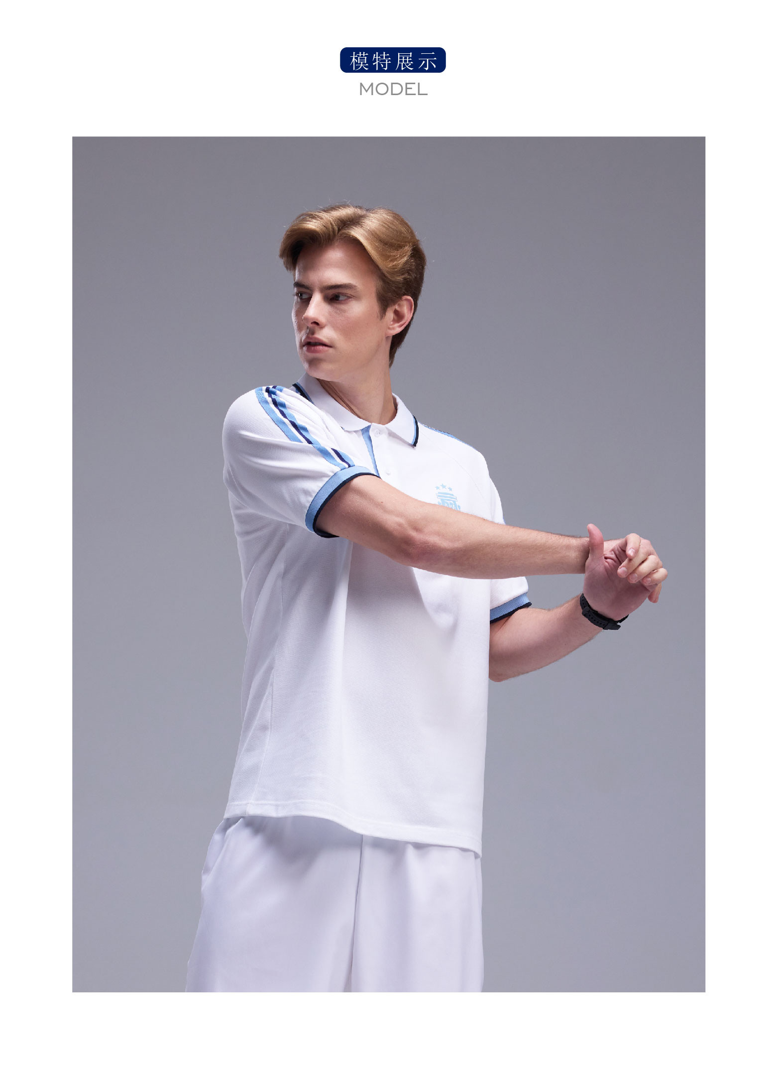 【官方正版】阿根廷国家队 | 白色肩条POLO衫休闲短袖T恤