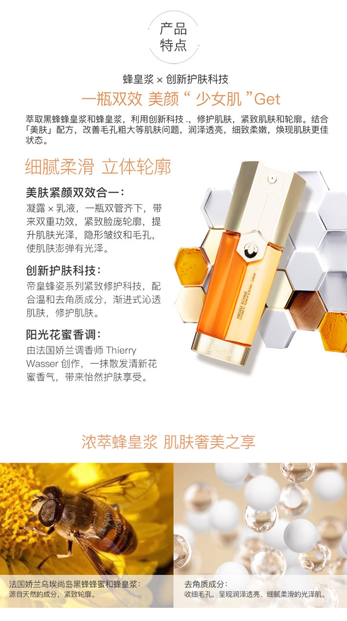 法国 Guerlain/娇兰 帝皇蜂姿双效精华露面部精华 双管双效精华露 50ml