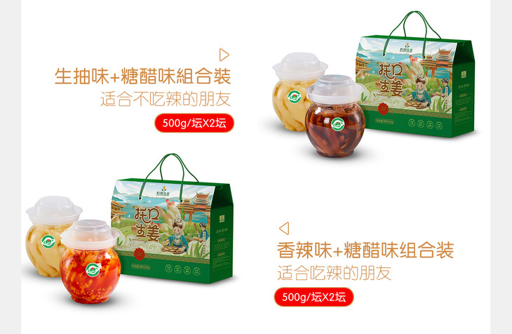 疯抢中!!【地理标志产品 洪江市托口镇生姜】酸辣 糖醋 生抽三种口味 脆嫩爽口零食 健康之选 500g*2坛/送手提礼盒装