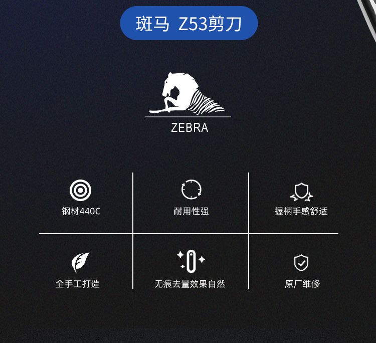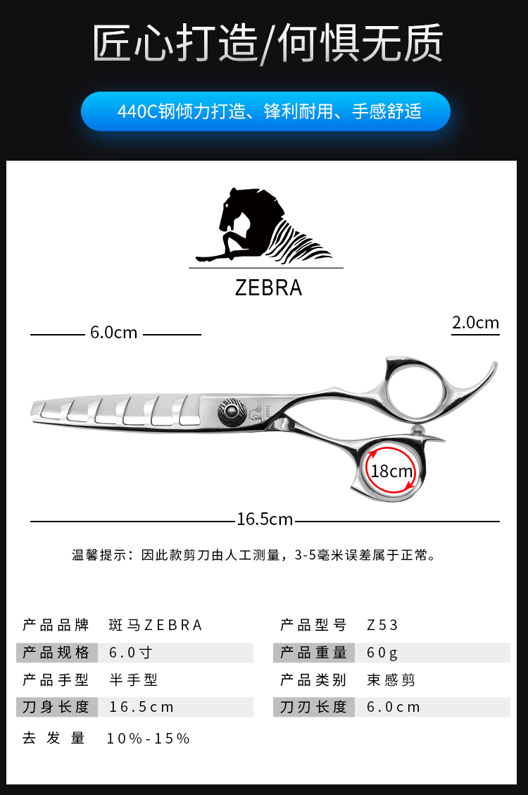 斑马剪刀Z53 美发剪去薄无痕鱼骨牙剪调量剪束感剪刀空洞剪刀 去发量10%-15%