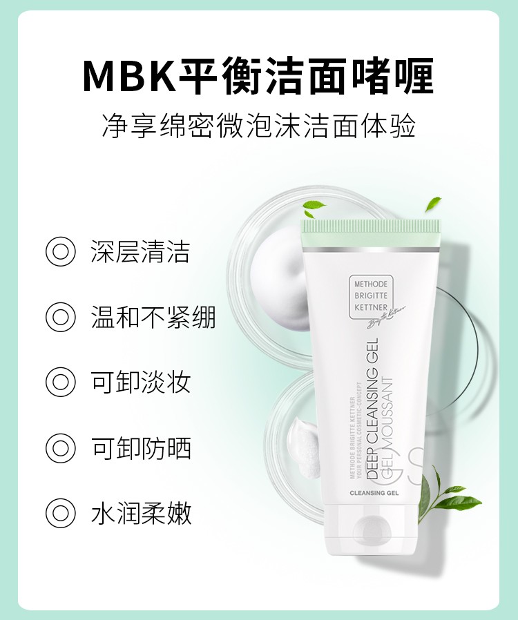 德国MBK平衡洁面啫喱100ml敏感肌深层清洁控油温和送1个同款啫喱25ml+起泡网*1