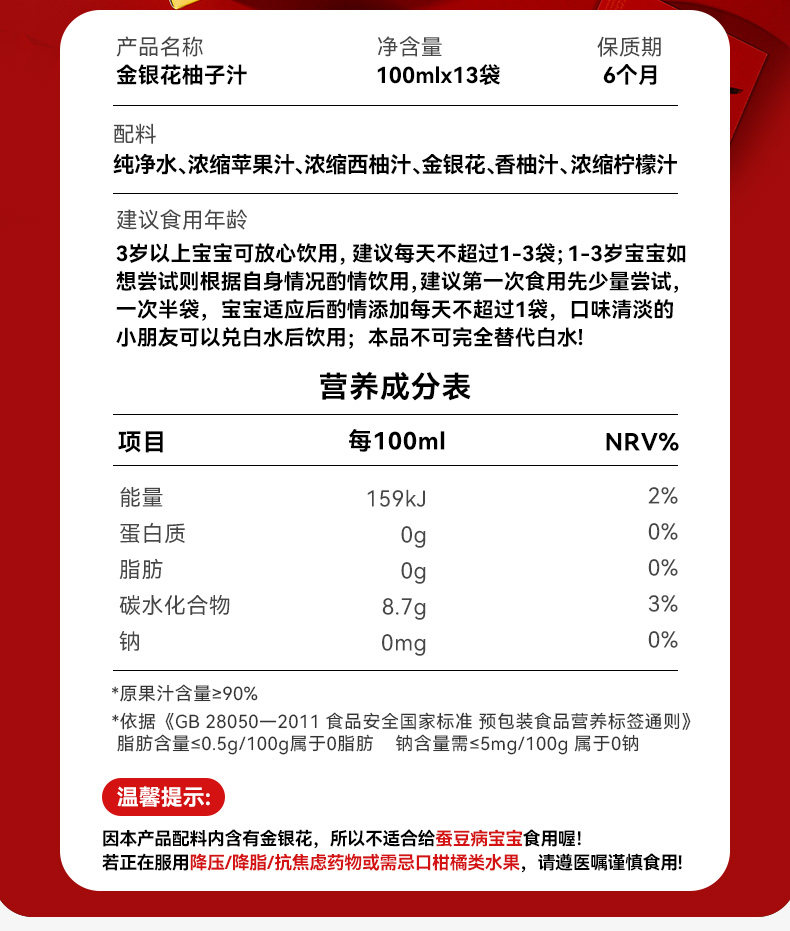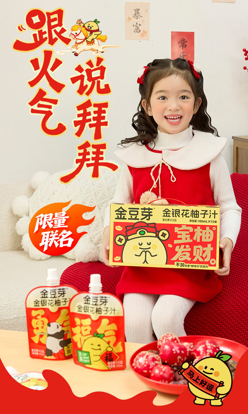 【新年礼盒】金豆芽金银花柚子汁茶儿童成人饮料开袋即饮礼盒便携