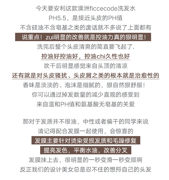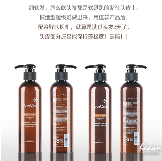 澳洲菲诗蔻(ficcecode)洗发水护发素男女通用(防脱无硅油去屑止痒控油)1瓶洗发水+1瓶护发素(2*260ml)包邮 ZC