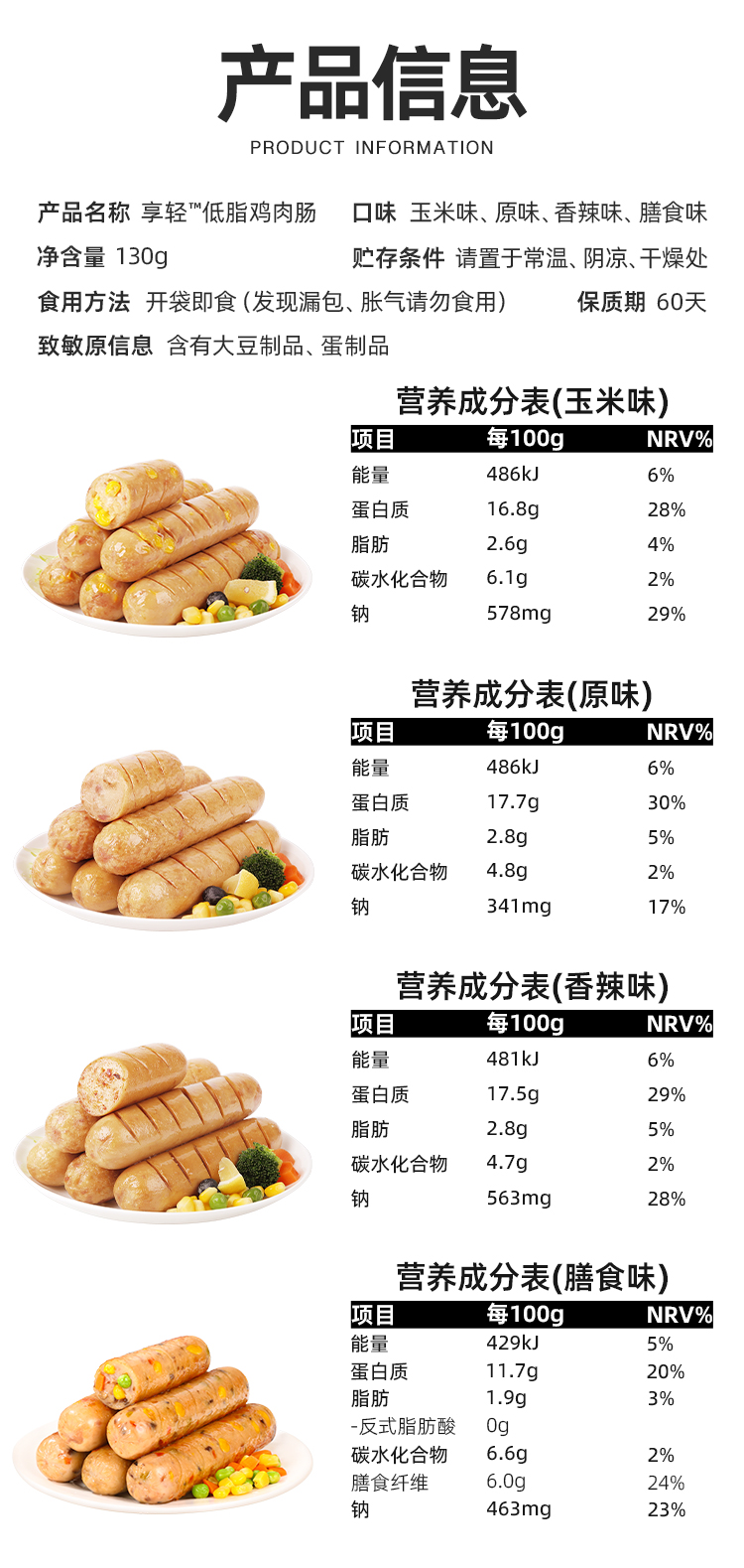预售4月4日发货【共享分销】满满鸡肉含量看得见 低脂鸡肉肠 鲜香爽口 每根约130g
