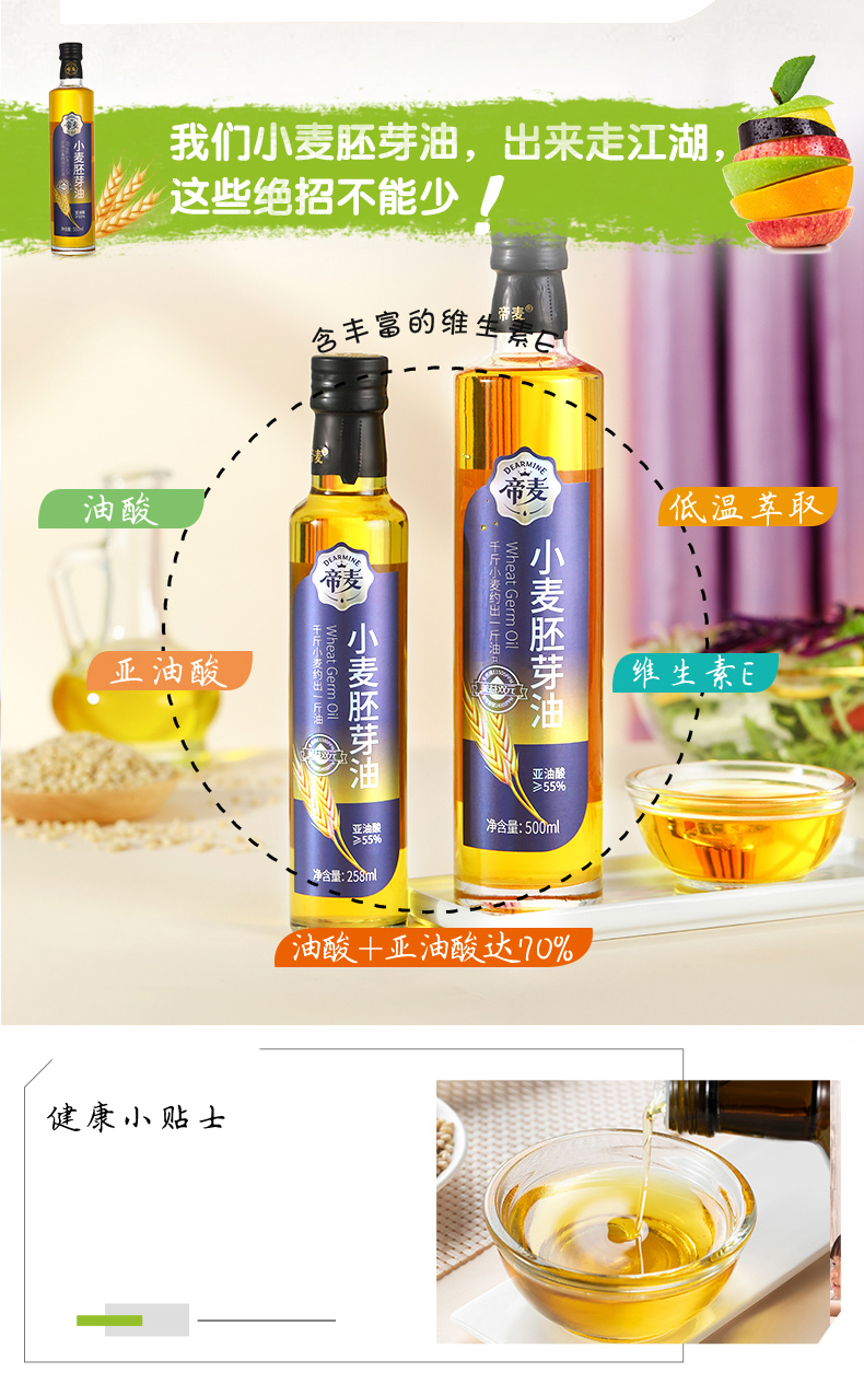 心选丨小麦胚芽油佐餐食用低温萃取 小麦胚芽油258ml/瓶