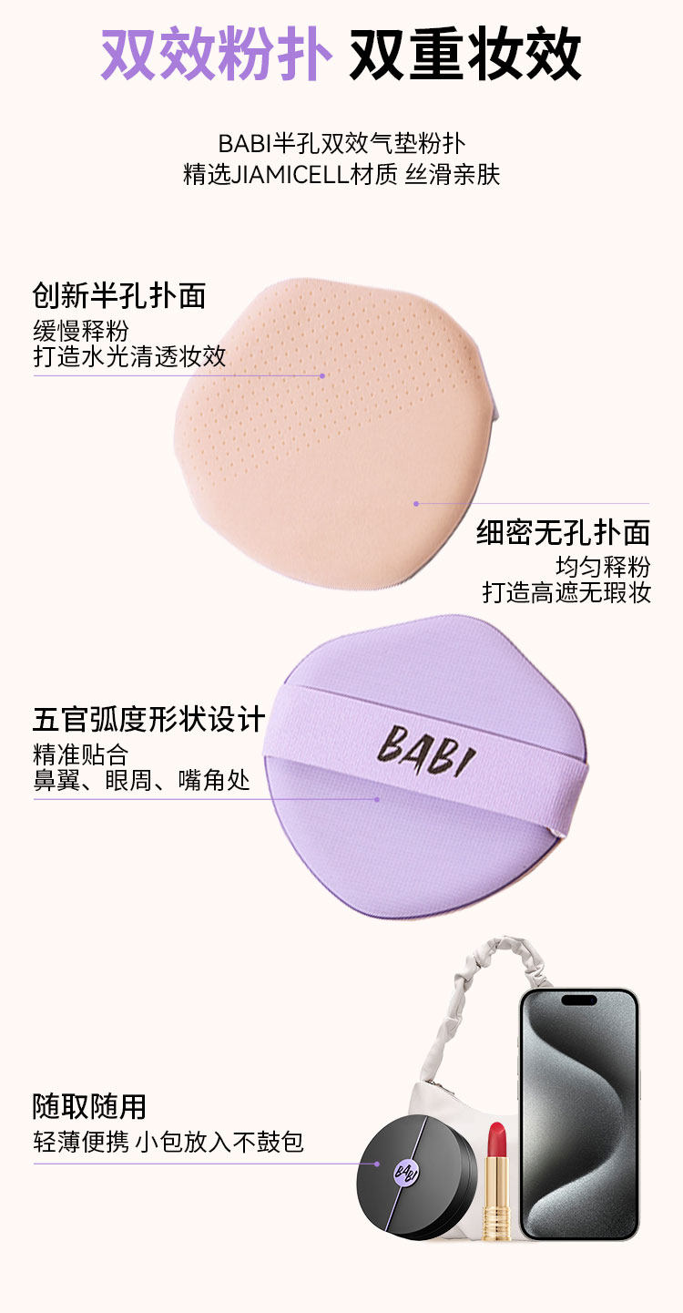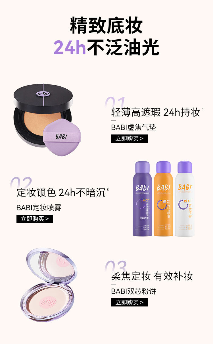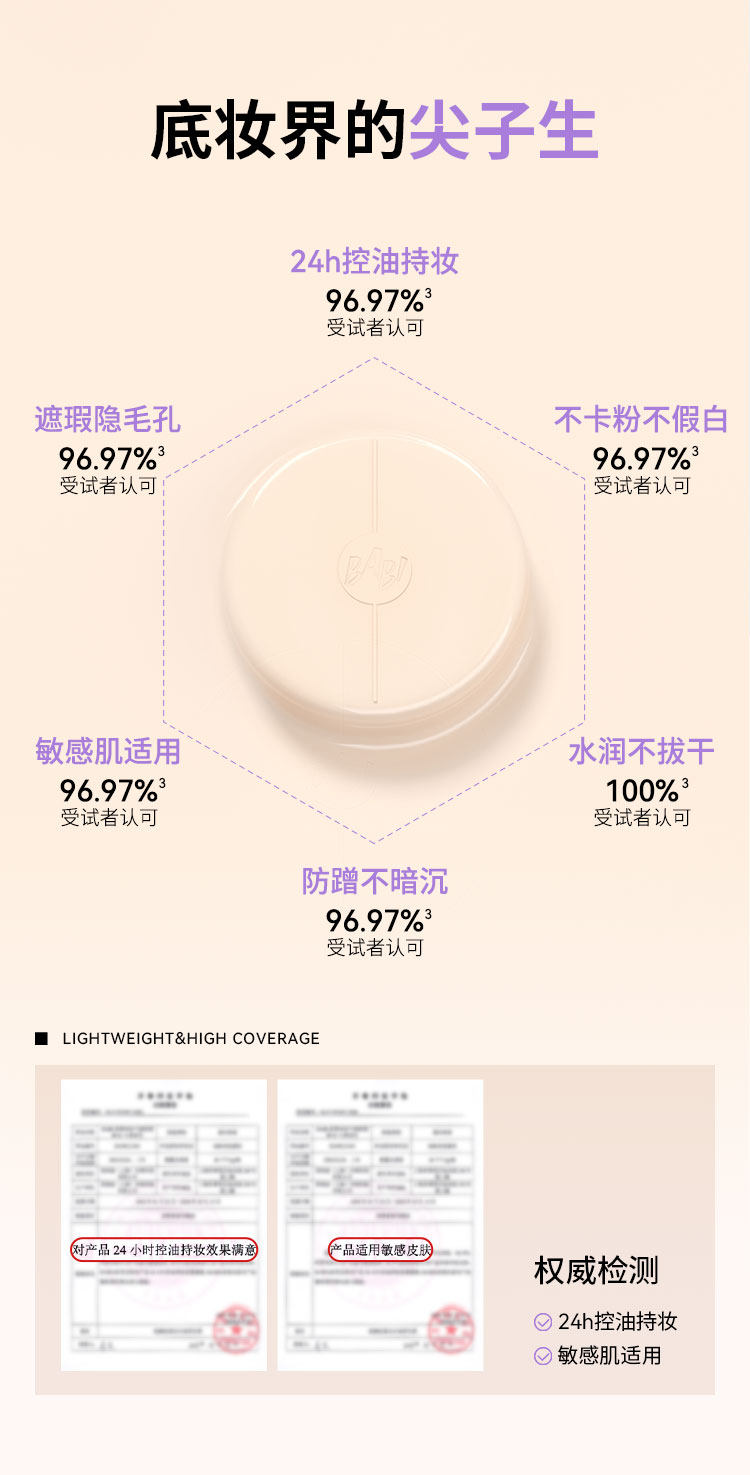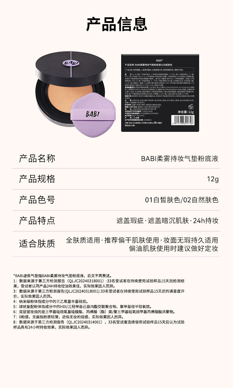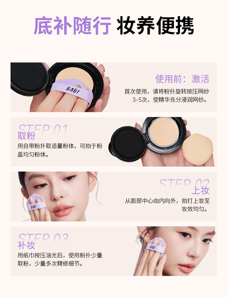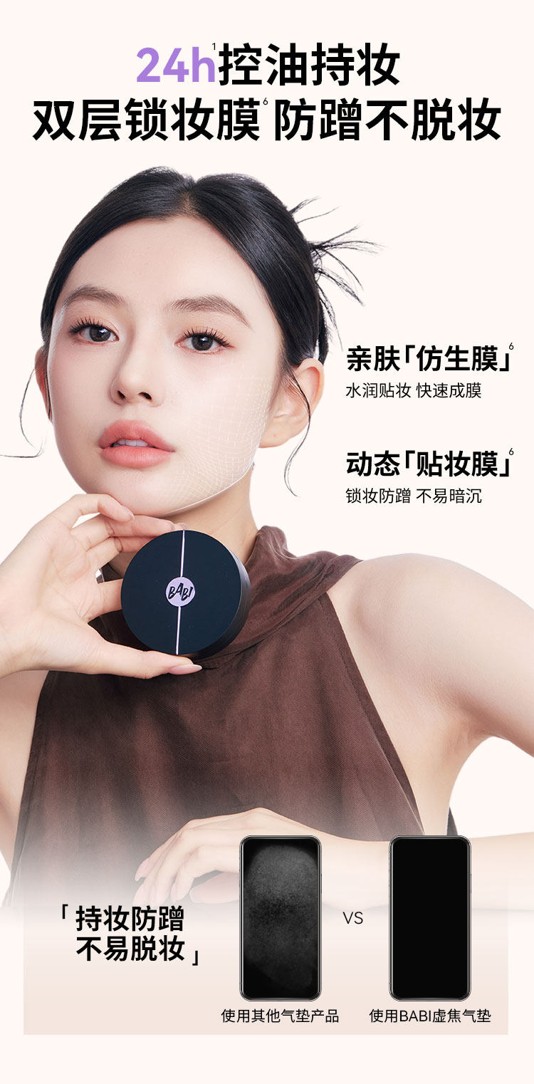 BABI持妆气垫 柔雾粉底液控油轻薄防蹭水润不拔干高遮瑕持久不脱妆