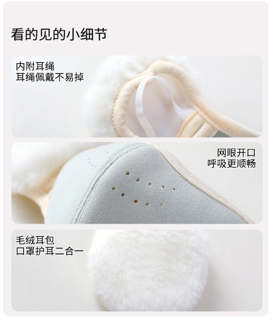 这种毛绒一体护耳设计 耳罩➕口罩,二合一设计,真的太人性化了。