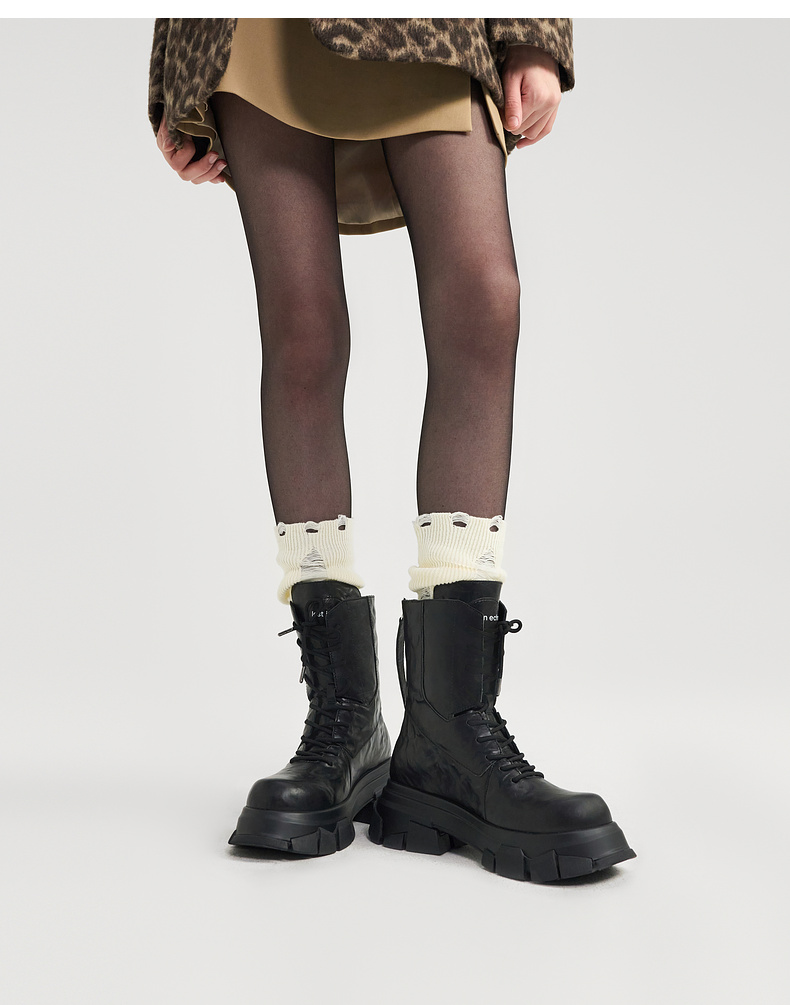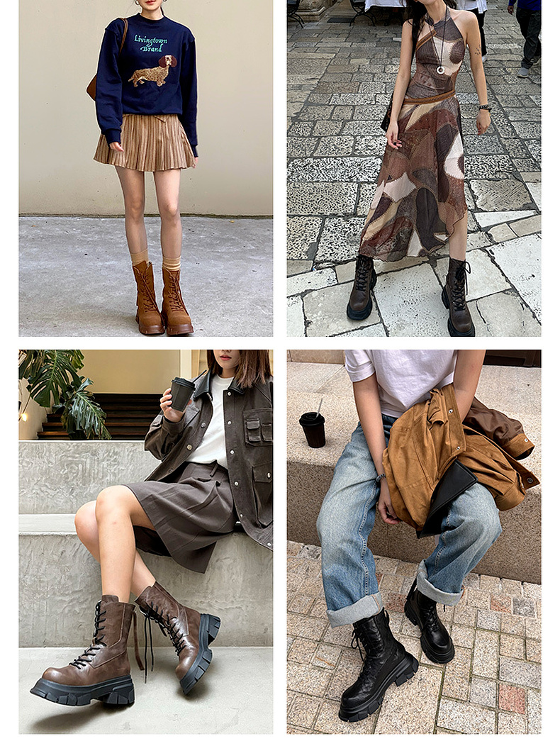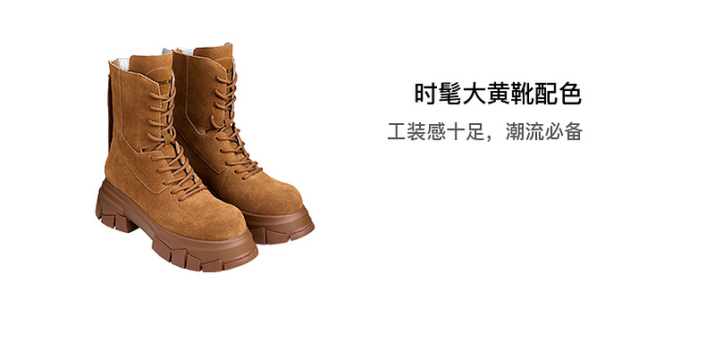 马君妍同款lost in echo户外厚底米奇头巴恩风真皮马丁靴大黄靴