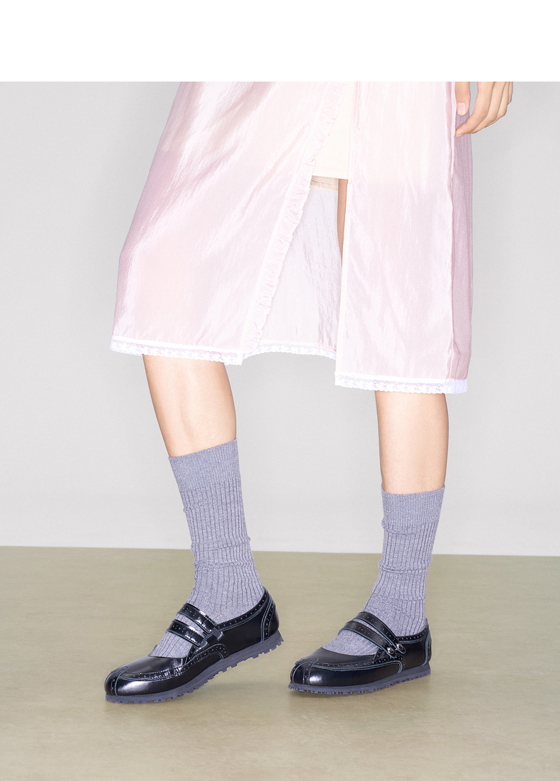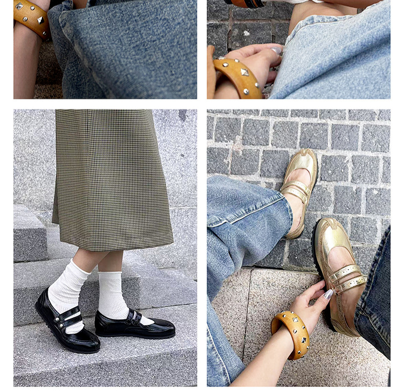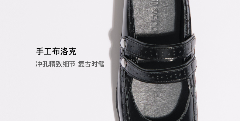 lost in echo2025秋冬新款浅口布洛克真皮超轻薄底芭蕾舞玛丽珍鞋