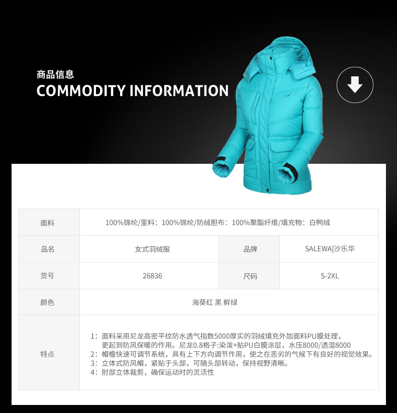 SALEWA沙乐华/女式中长皮肤衣 026670
