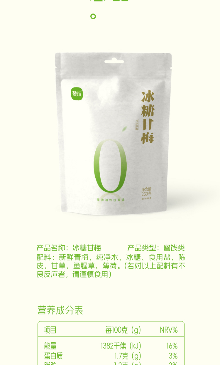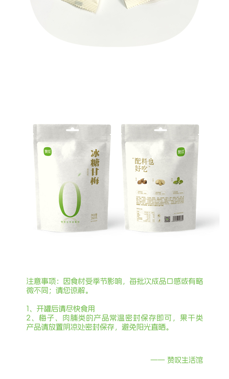 赞叹冰糖甘梅260g袋装酸甜爽口陈皮甘草回味蜜饯休闲零食