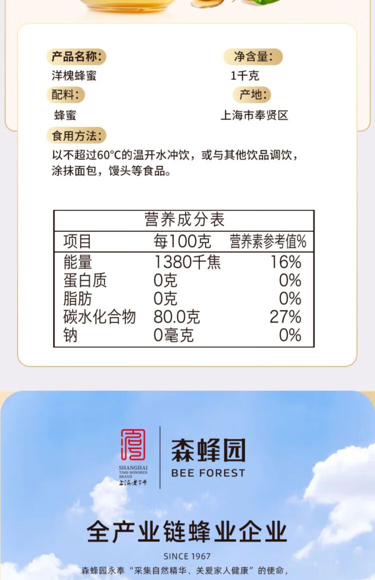 森蜂园-洋槐蜂蜜1kg(挤压)