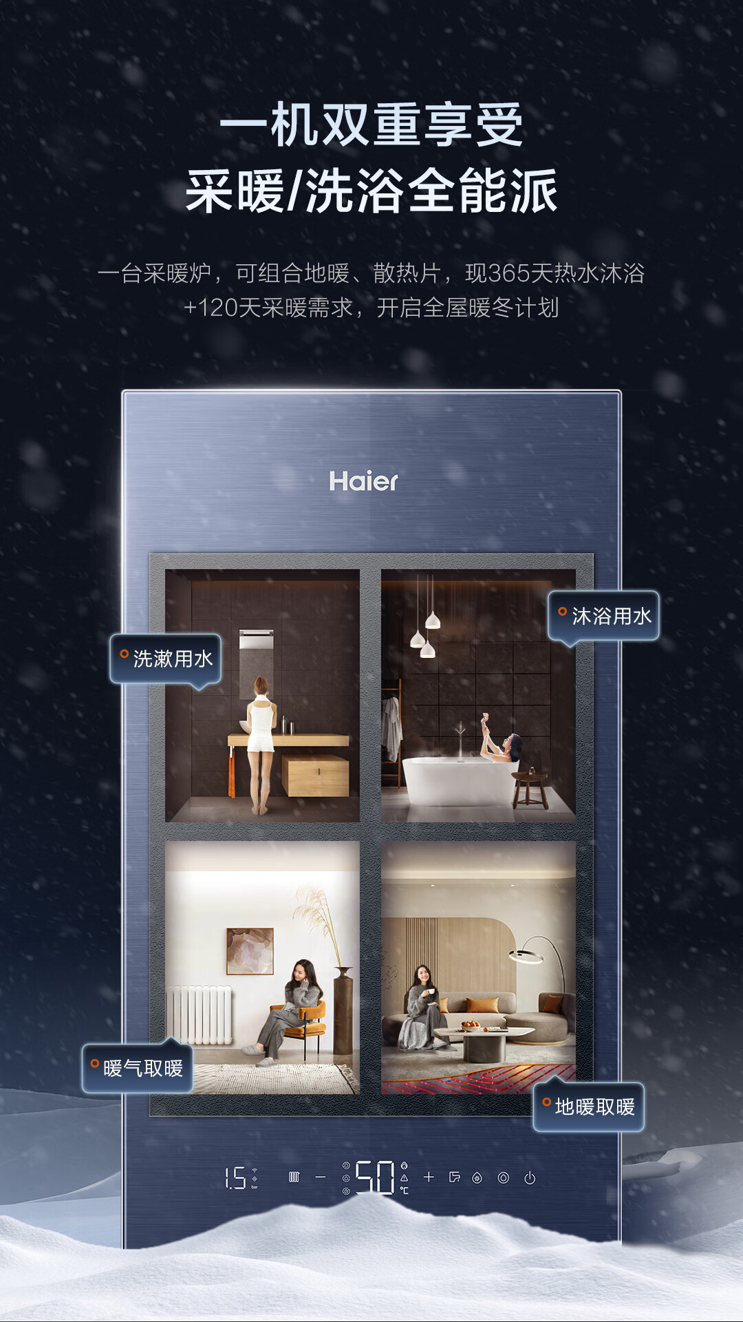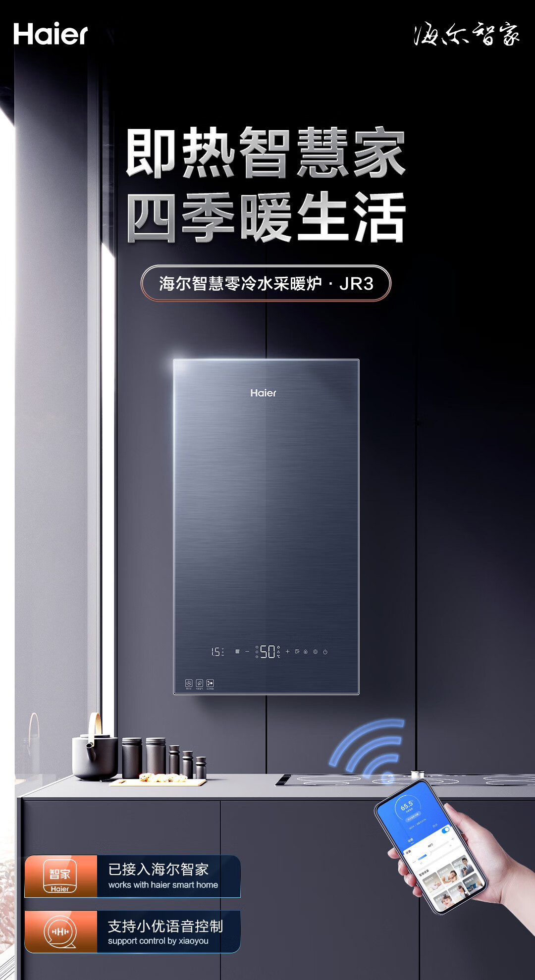 海尔(Haier)增压零冷水燃气壁挂炉30KW天然气采暖炉家用板换式地暖暖气片锅炉变频风机L1PB30-JR3(T)U1