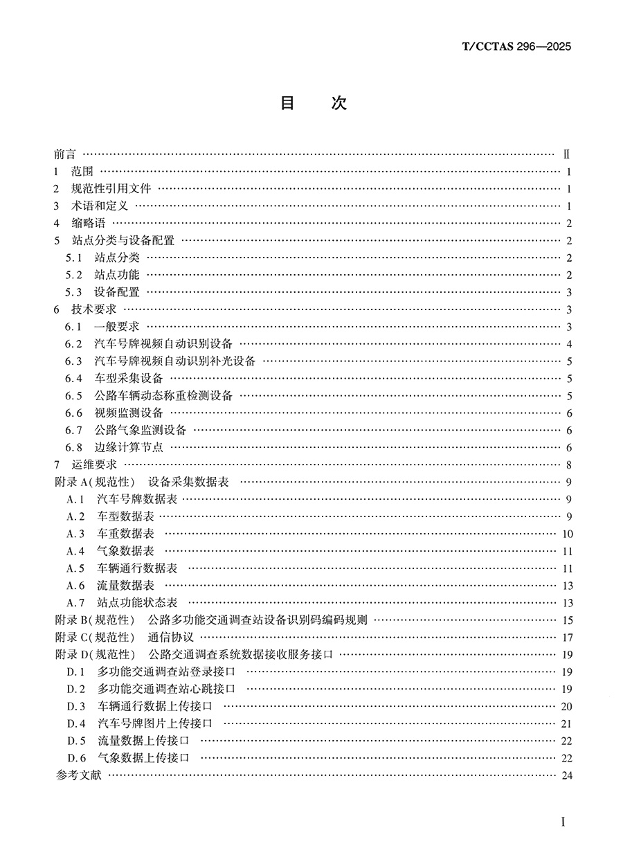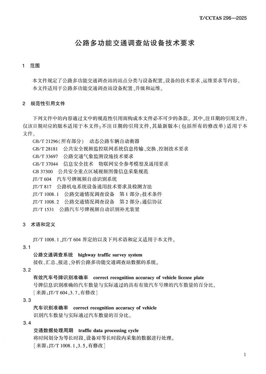 书名:公路多功能交通调查站设备技术要求T/CCTAS 296—2025