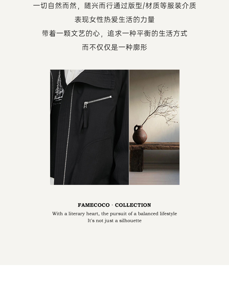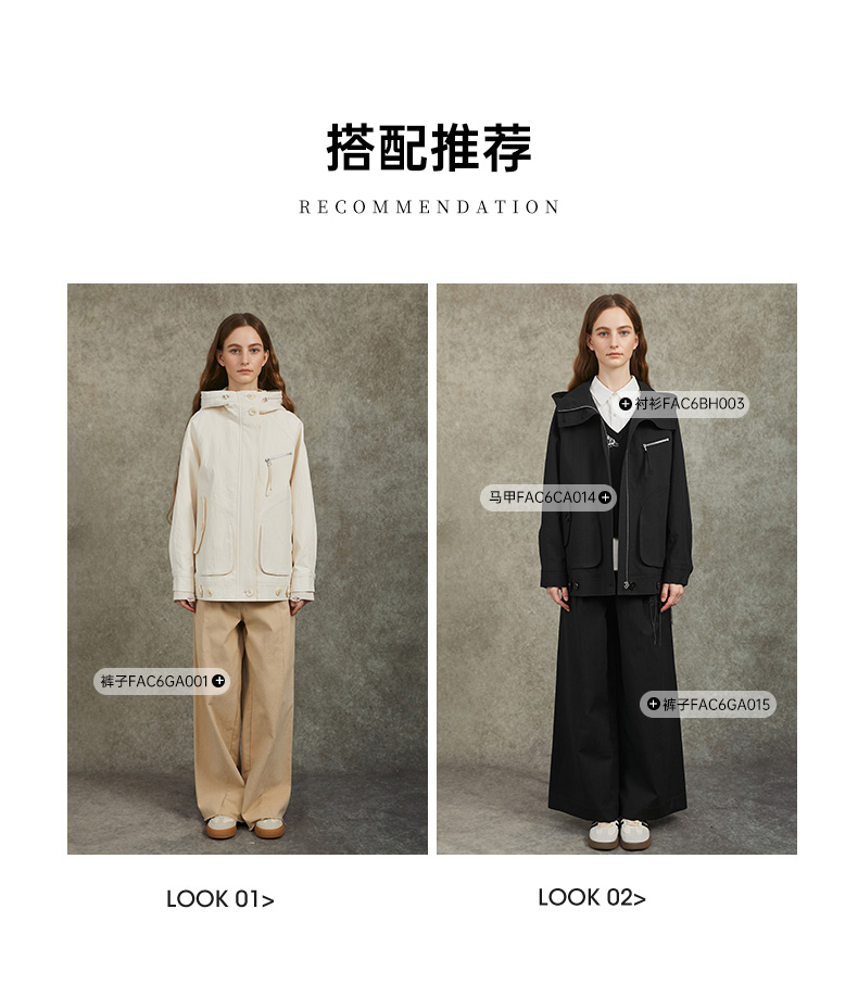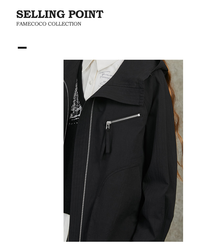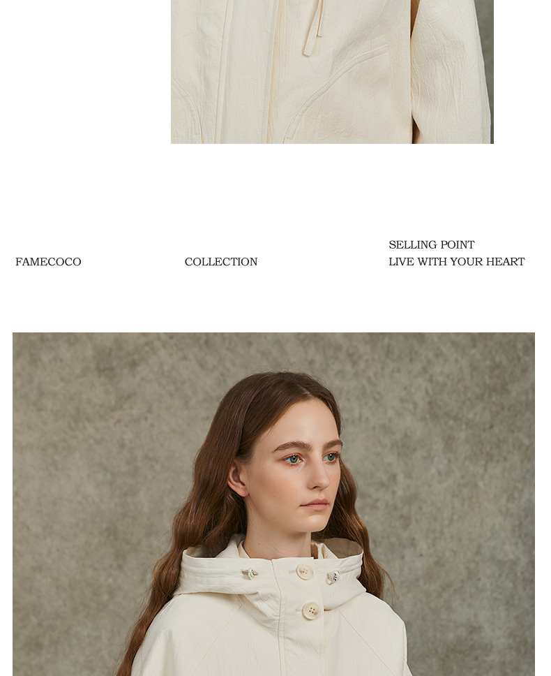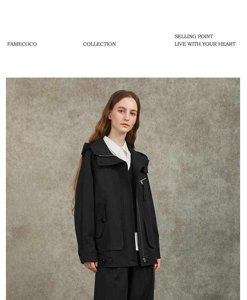 Famecoco范可儿棉质宽松休闲连帽外套文艺百搭短风衣FAC6AV001