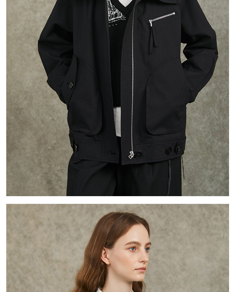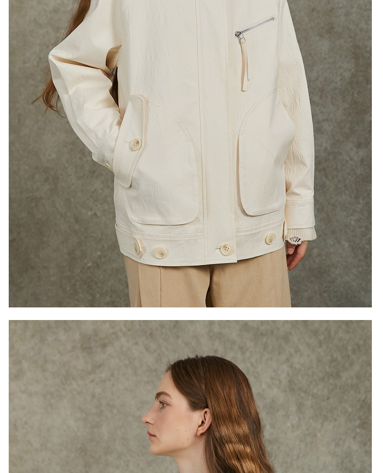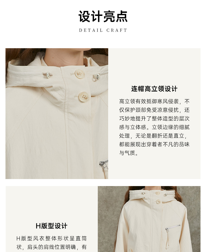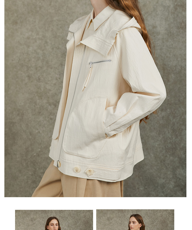 Famecoco范可儿棉质宽松休闲连帽外套文艺百搭短风衣FAC6AV001