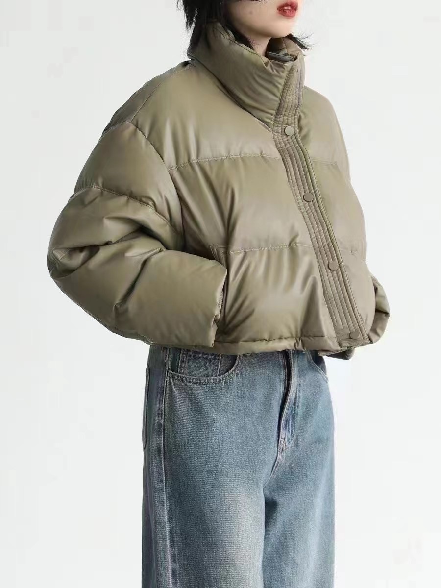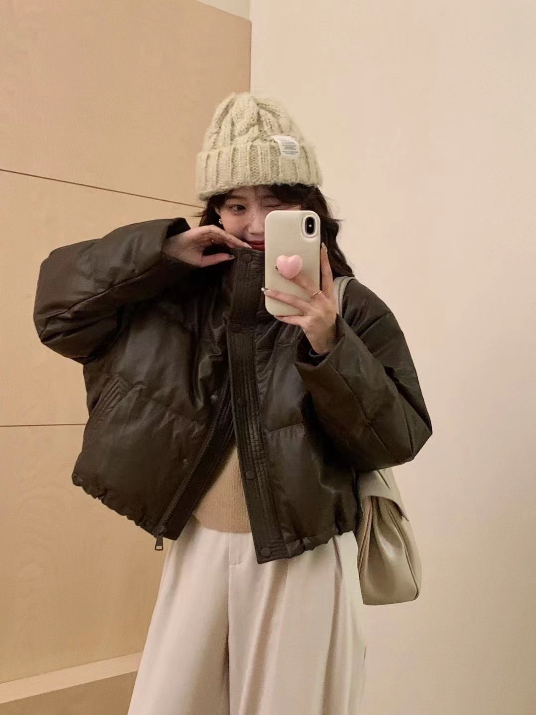 【YW】无忧购免洗pu皮羽绒棉服女短款冬季立领面包服小个子肯豆外套6816(截单后3-5天发货)