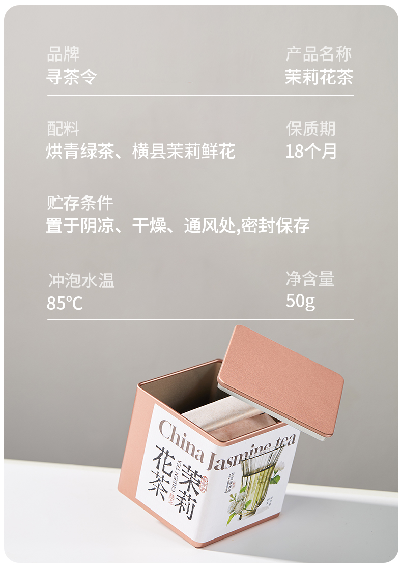 寻茶令茉莉花茶优质绿茶清香型花香 50g*1盒