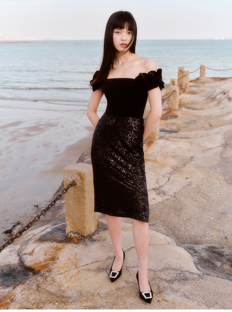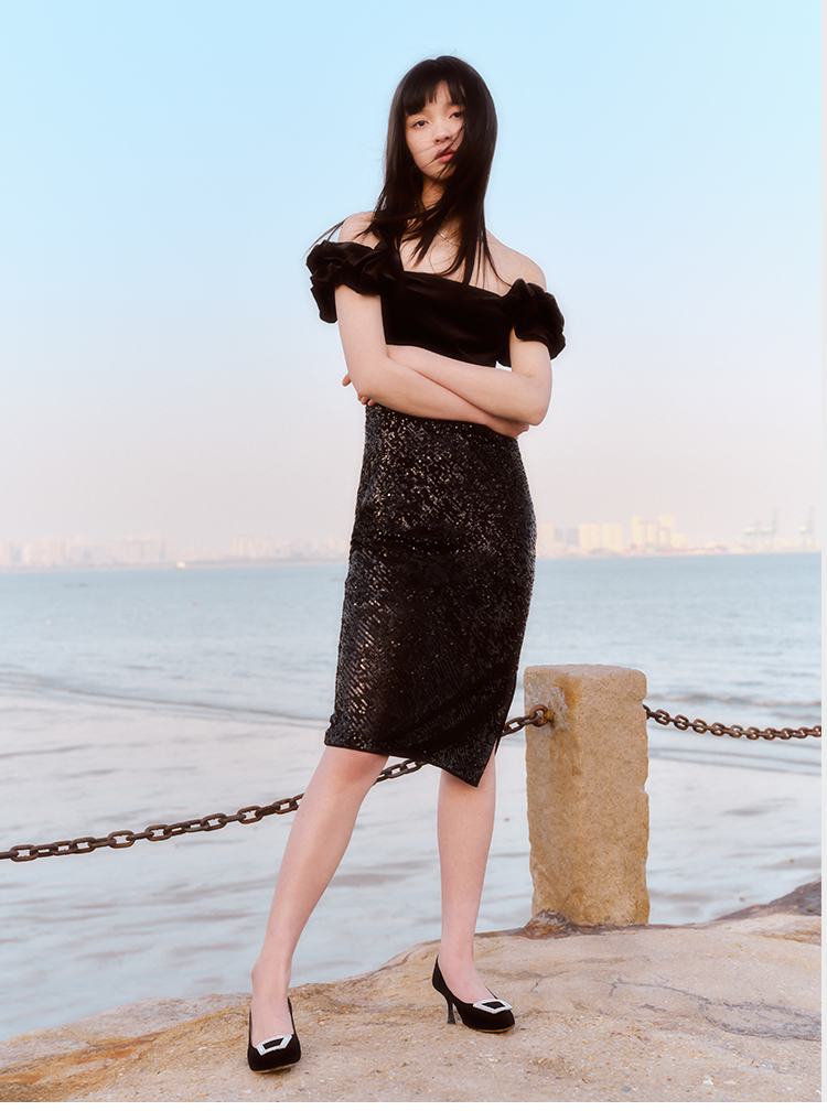 星期六闪钻蝴蝶结方头粗跟单鞋SSC3111322