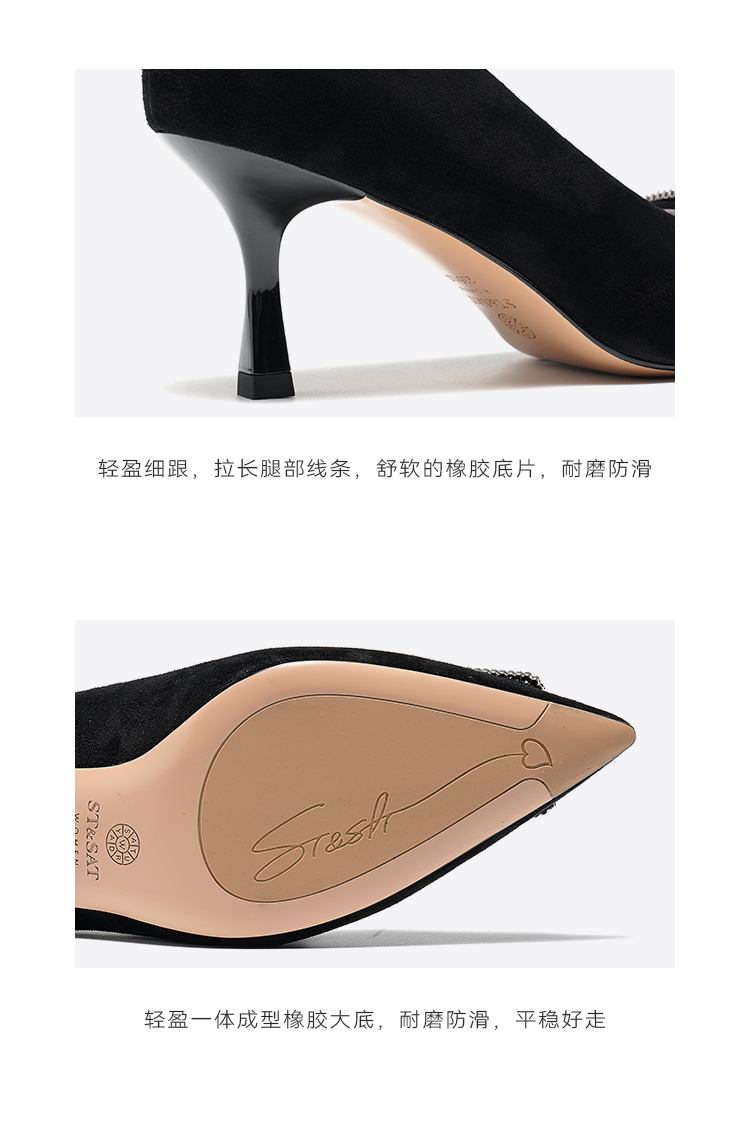 星期六26夏新款优雅绒面通勤粗跟穆勒拖SSE2111C9E
