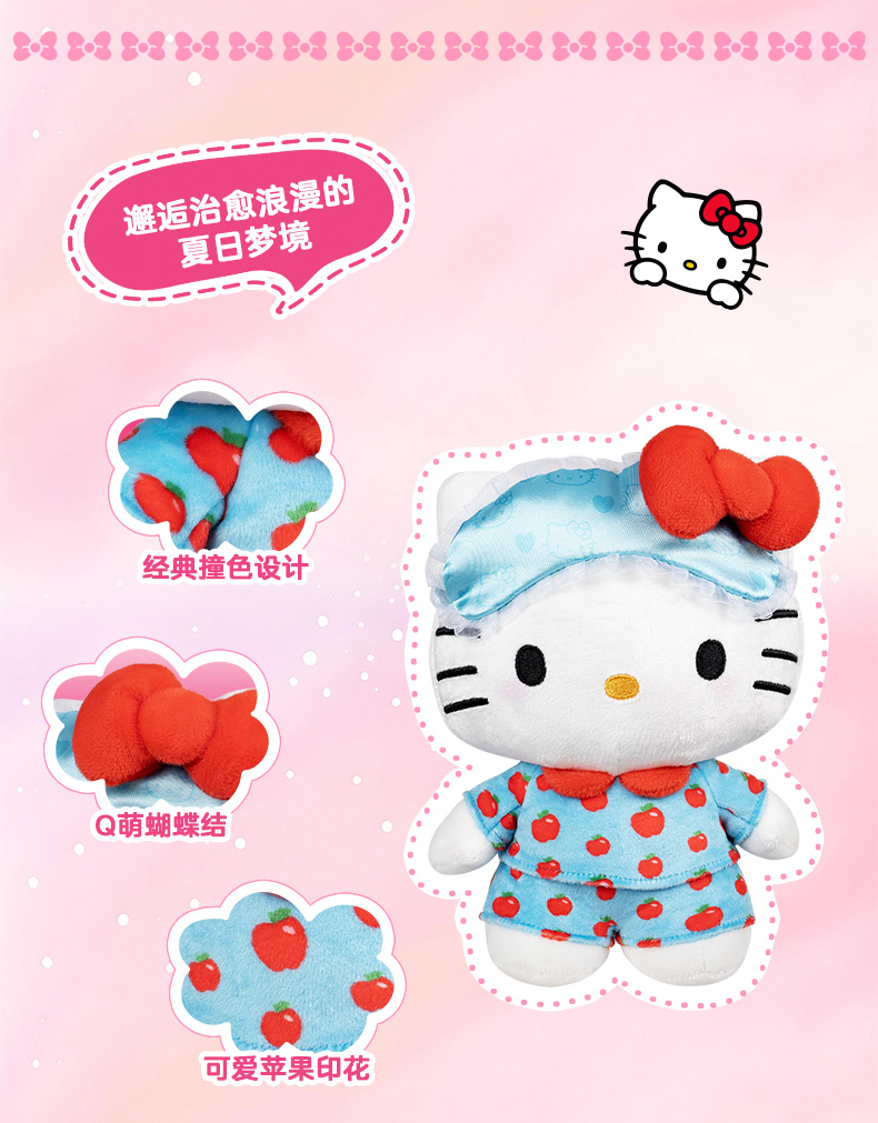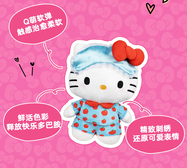 Jazwares 8英寸Hello Kitty 凯蒂猫萌趣毛绒玩偶(苹果睡衣)