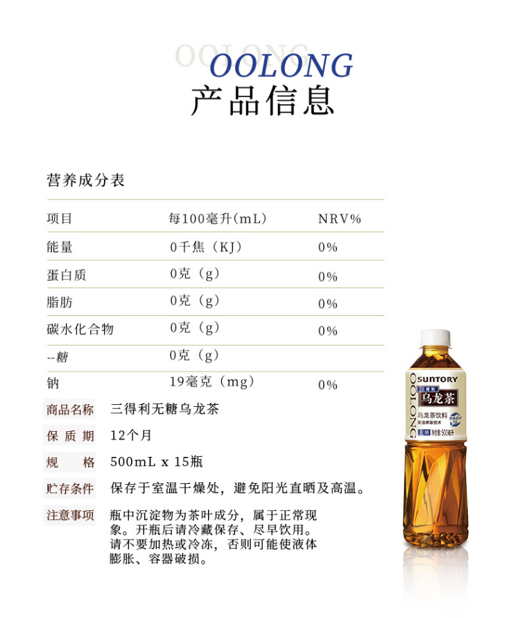 三得利 无糖乌龙茶饮料 500ml*15瓶(包邮直发)