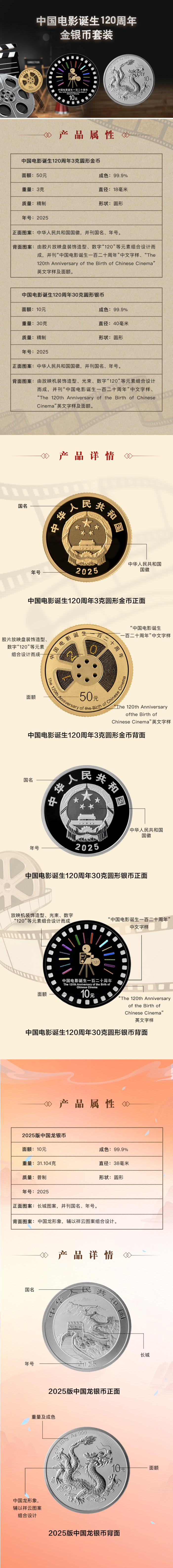 【发行价】2025年中国电影诞生120周年金银币(封装版)