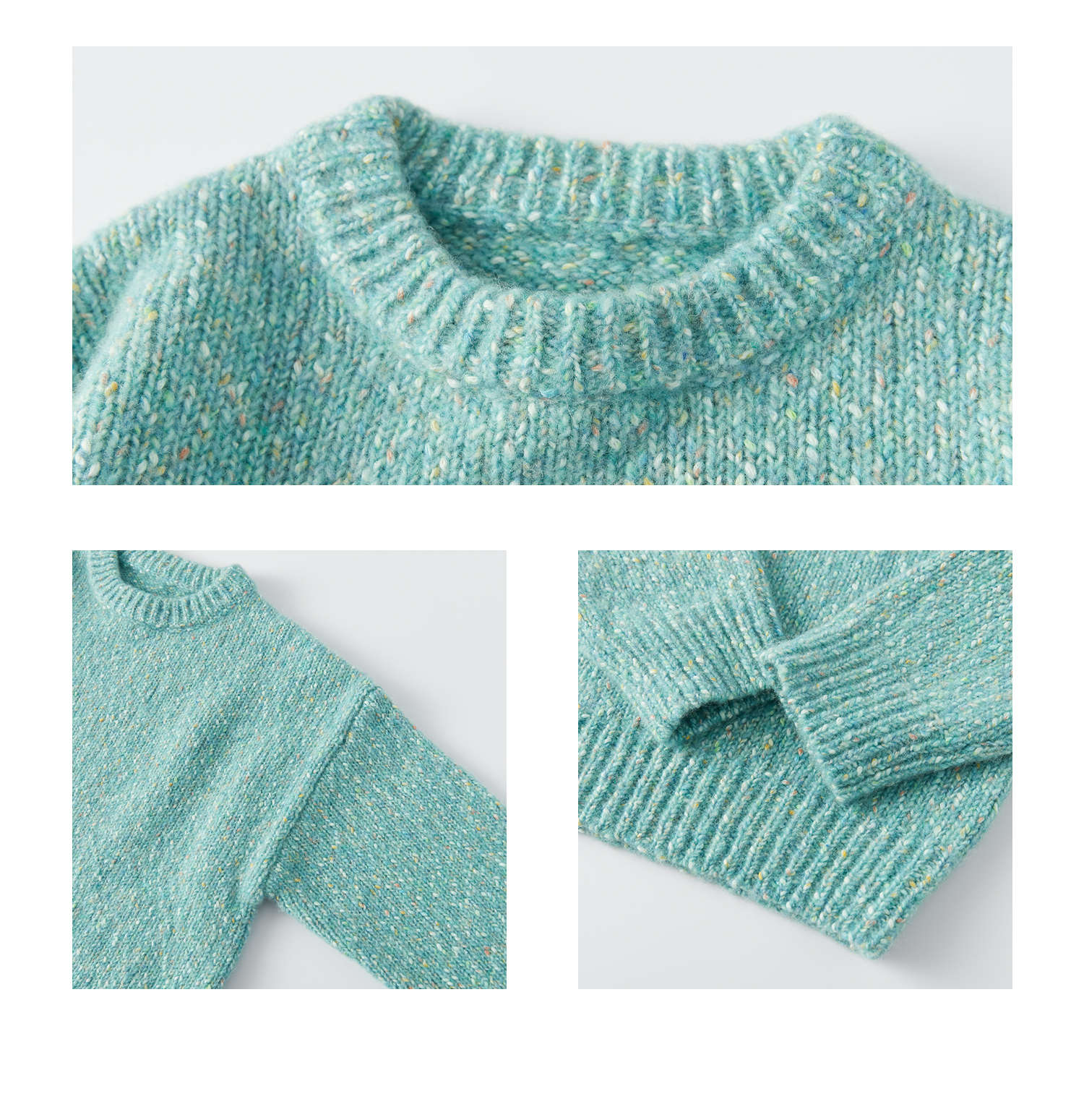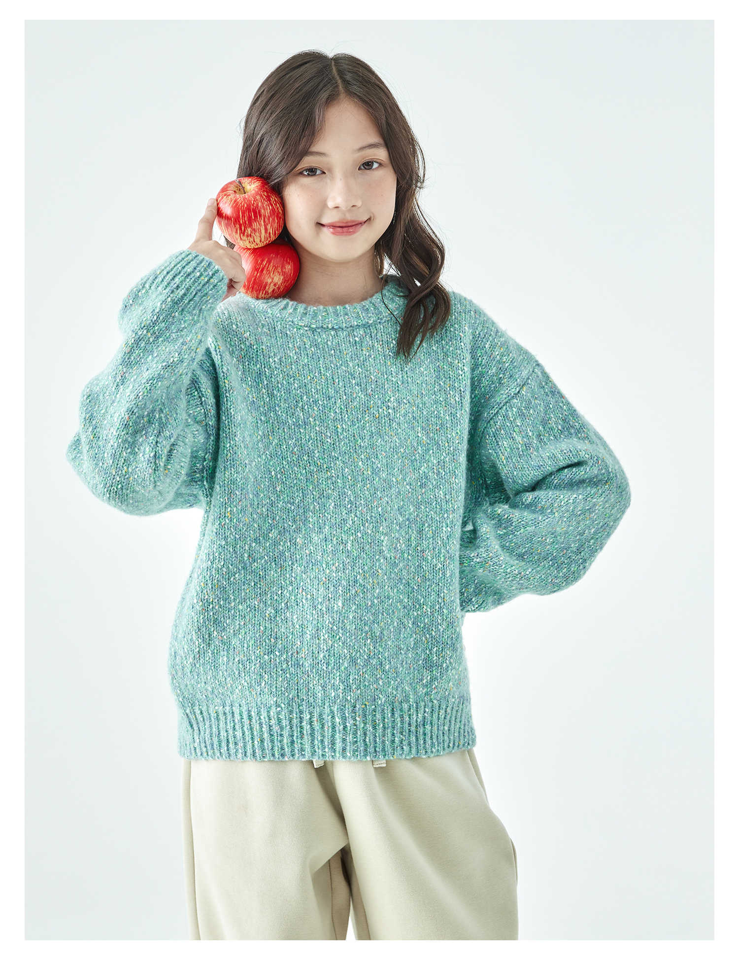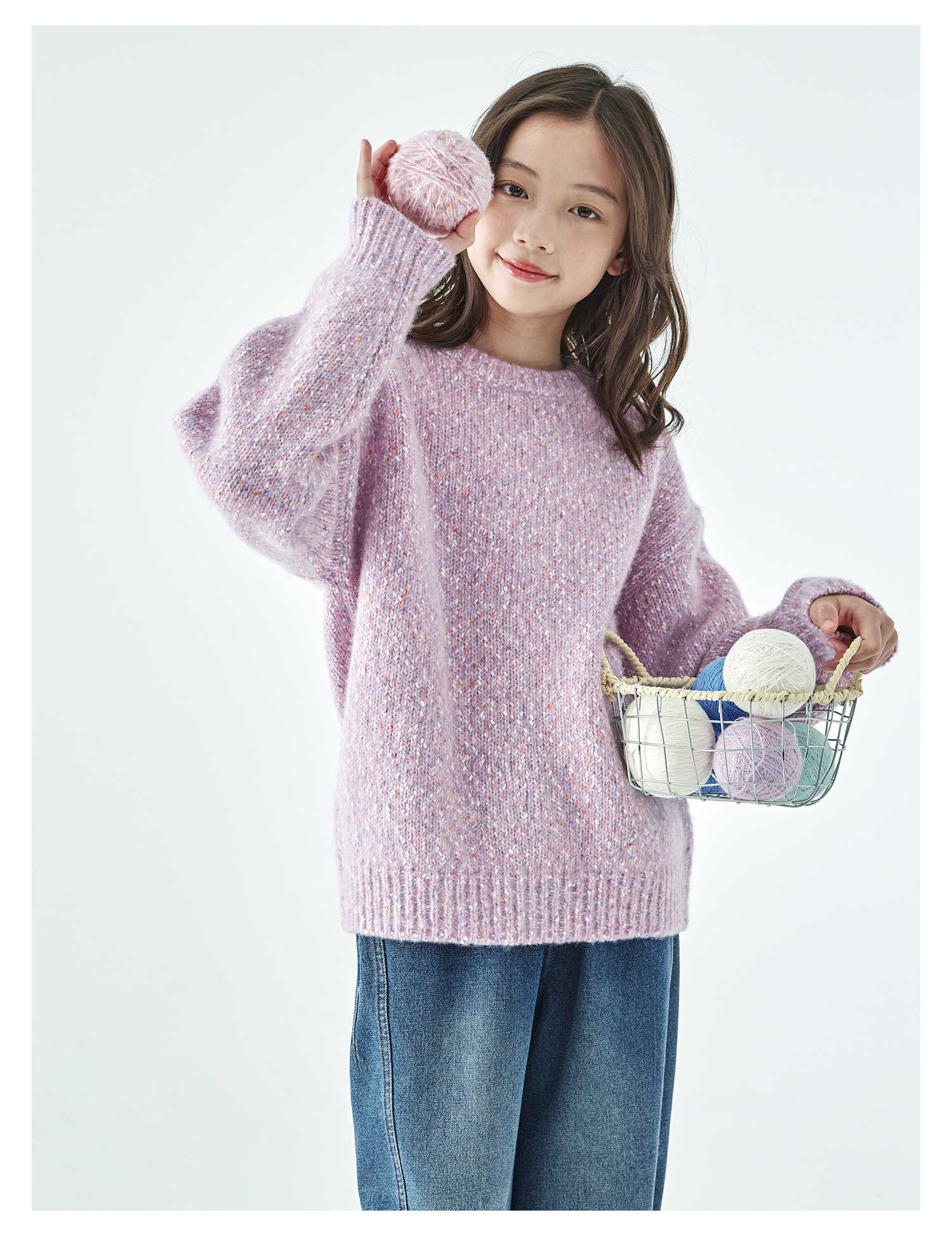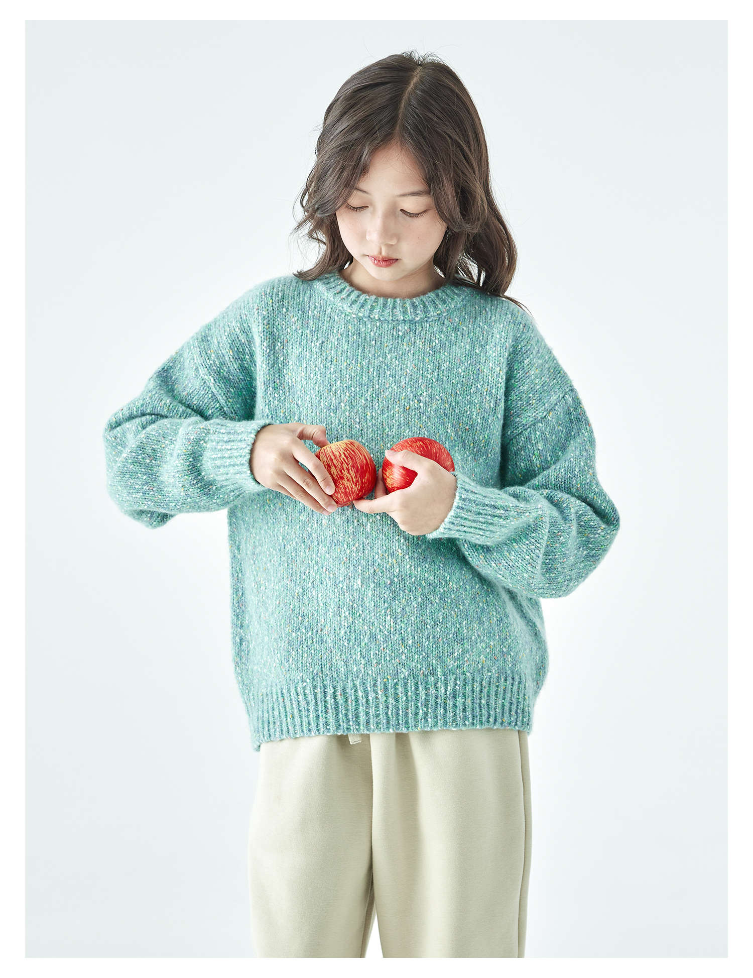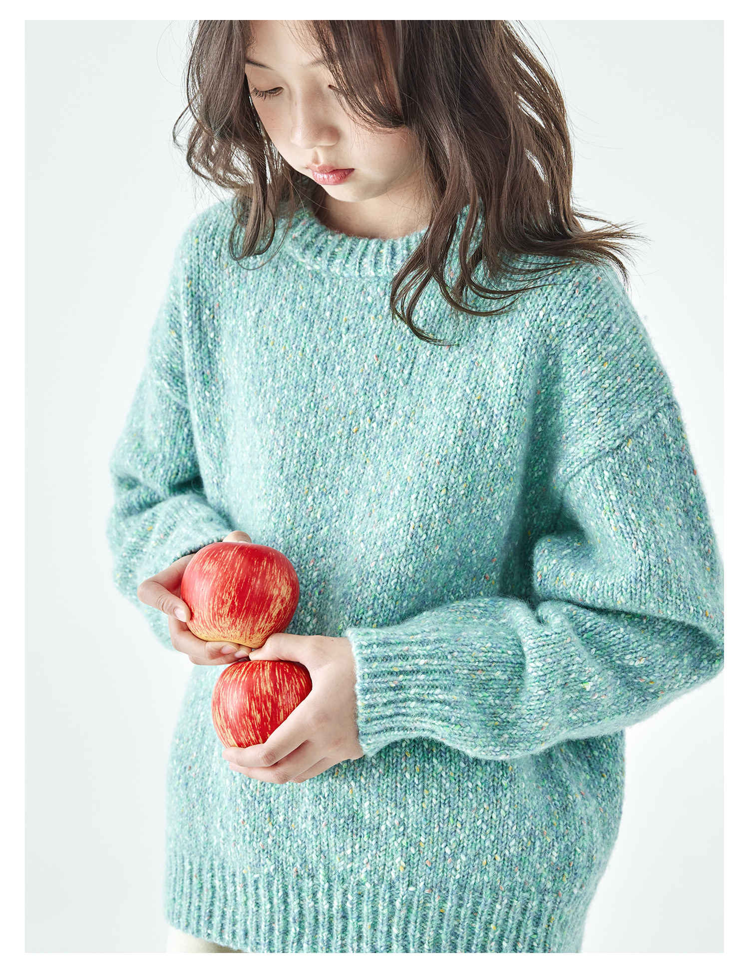 棵初25年秋冬新款亲子中大女童彩点复古圆领毛衣保暖羊毛混纺上衣