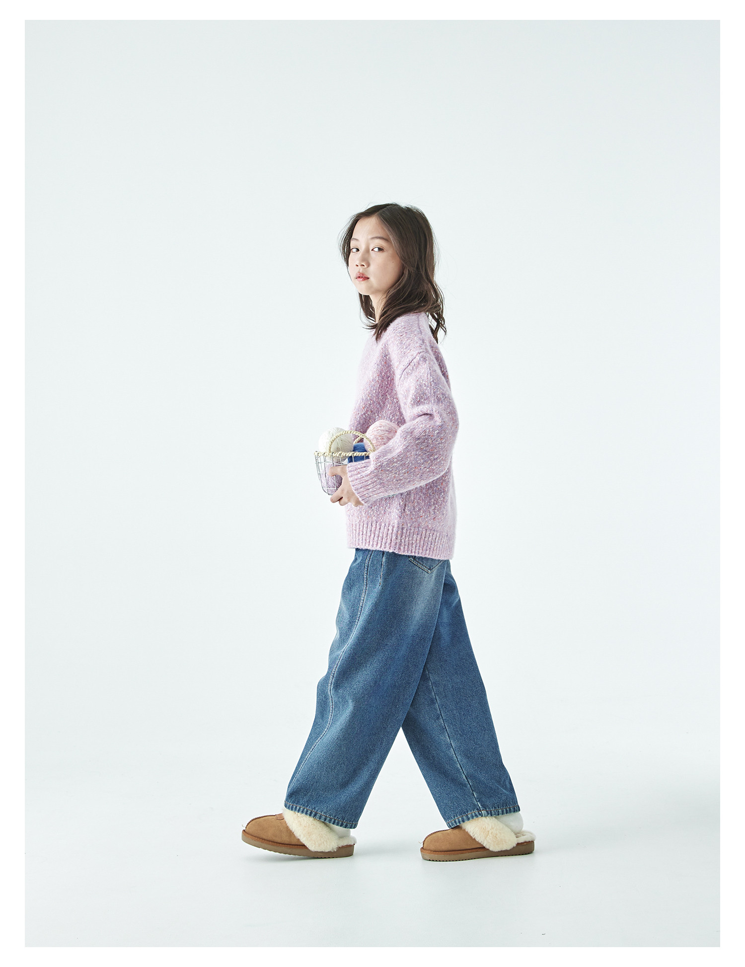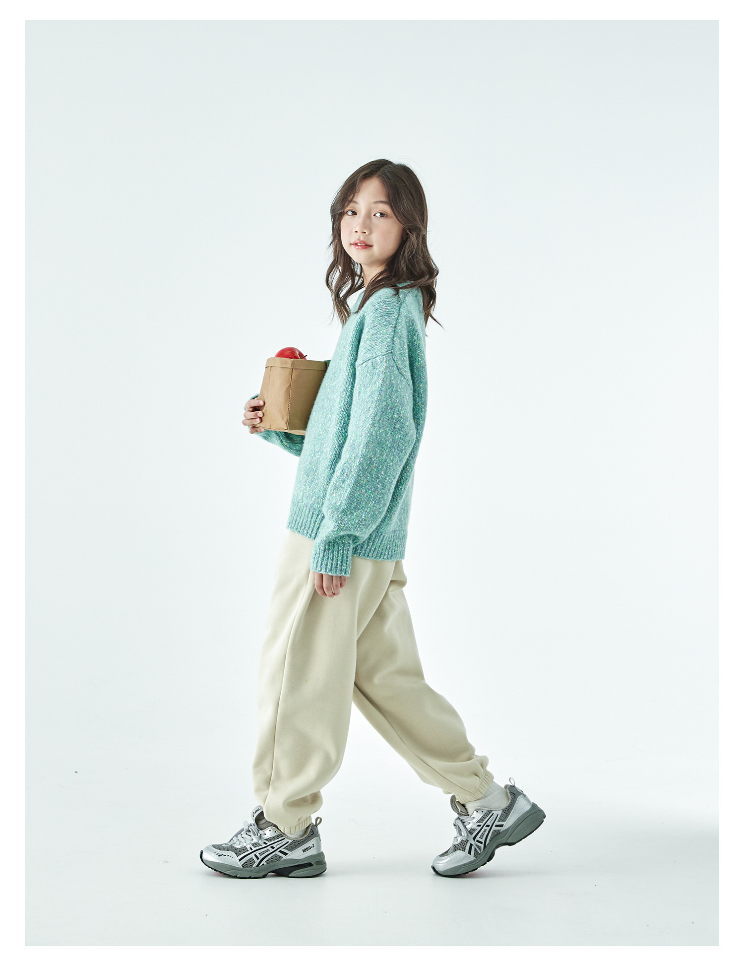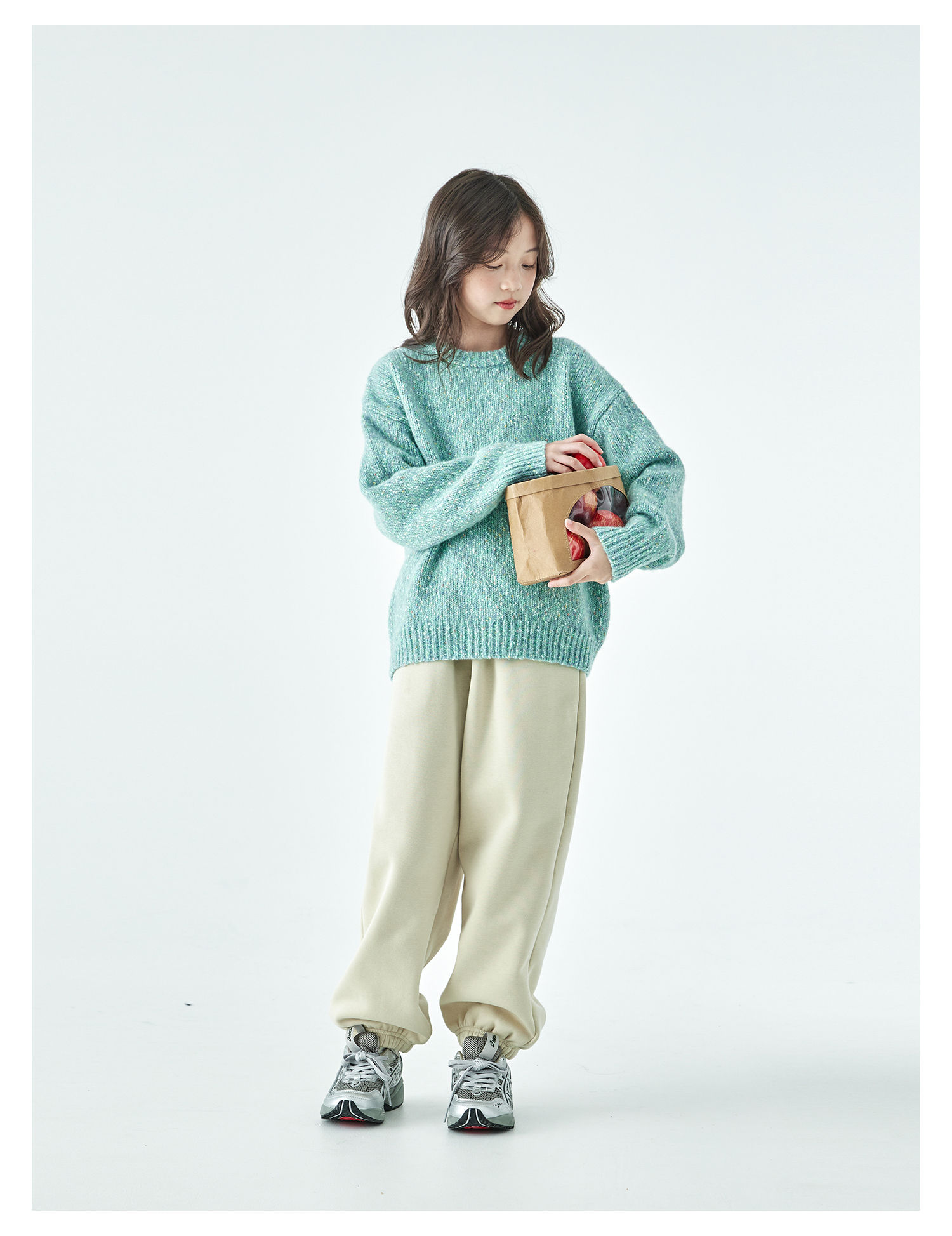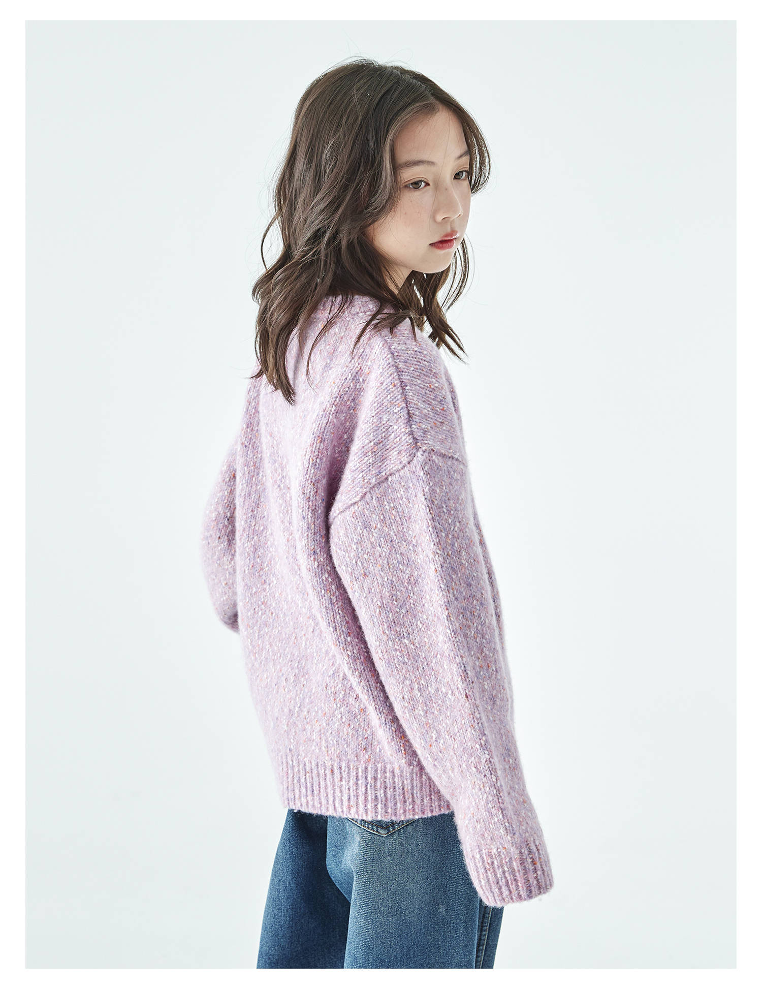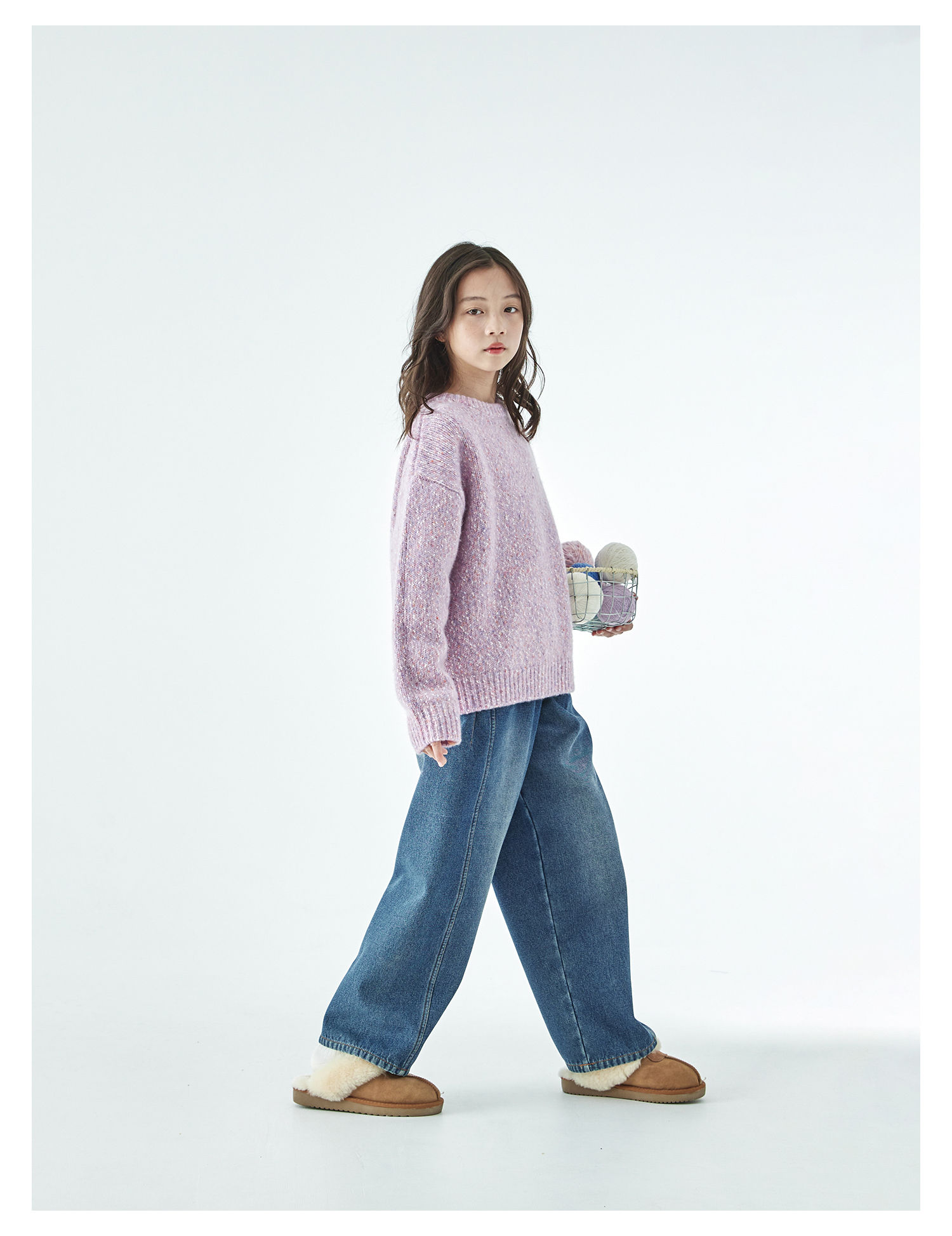 棵初25年秋冬新款亲子中大女童彩点复古圆领毛衣保暖羊毛混纺上衣