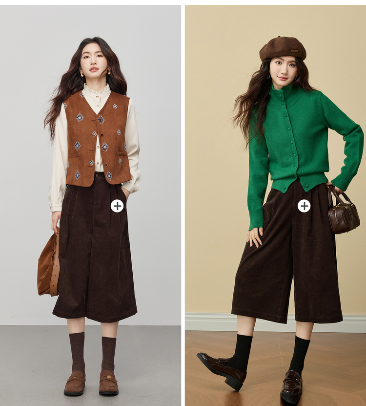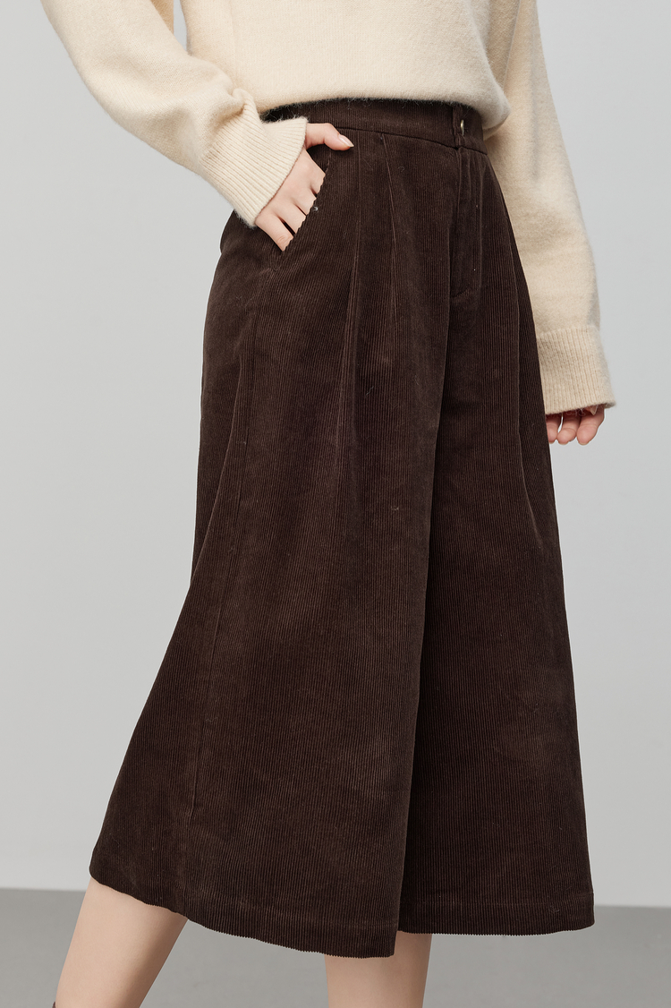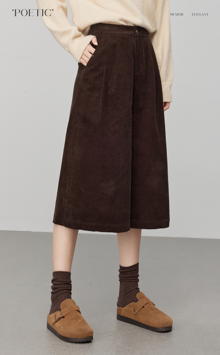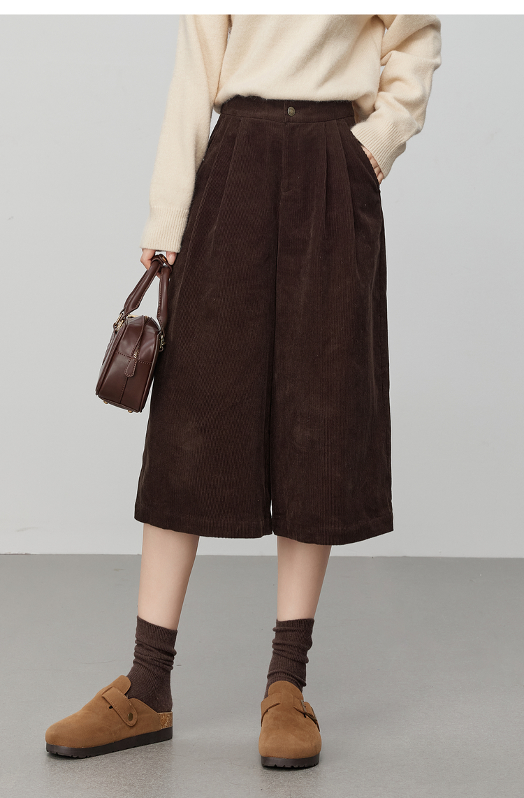 【12/03新品】熙世界复古灯芯绒七分阔腿裤女秋冬加厚遮胯显瘦宽松直筒休闲裤子