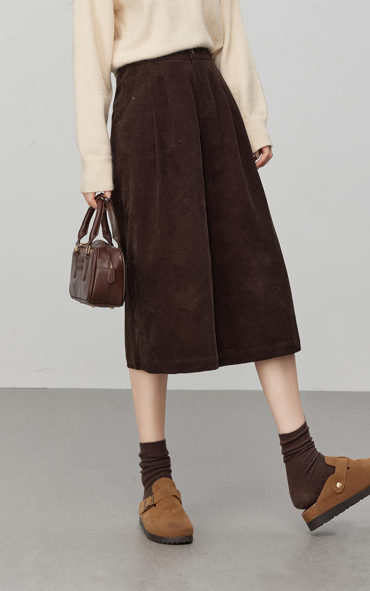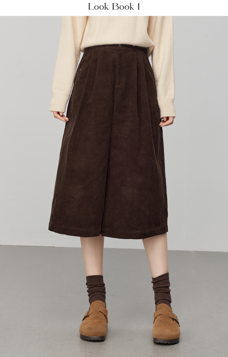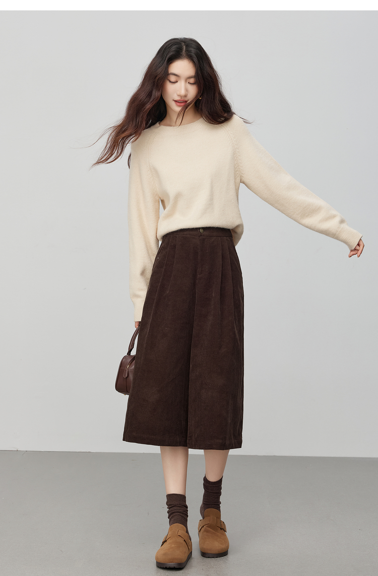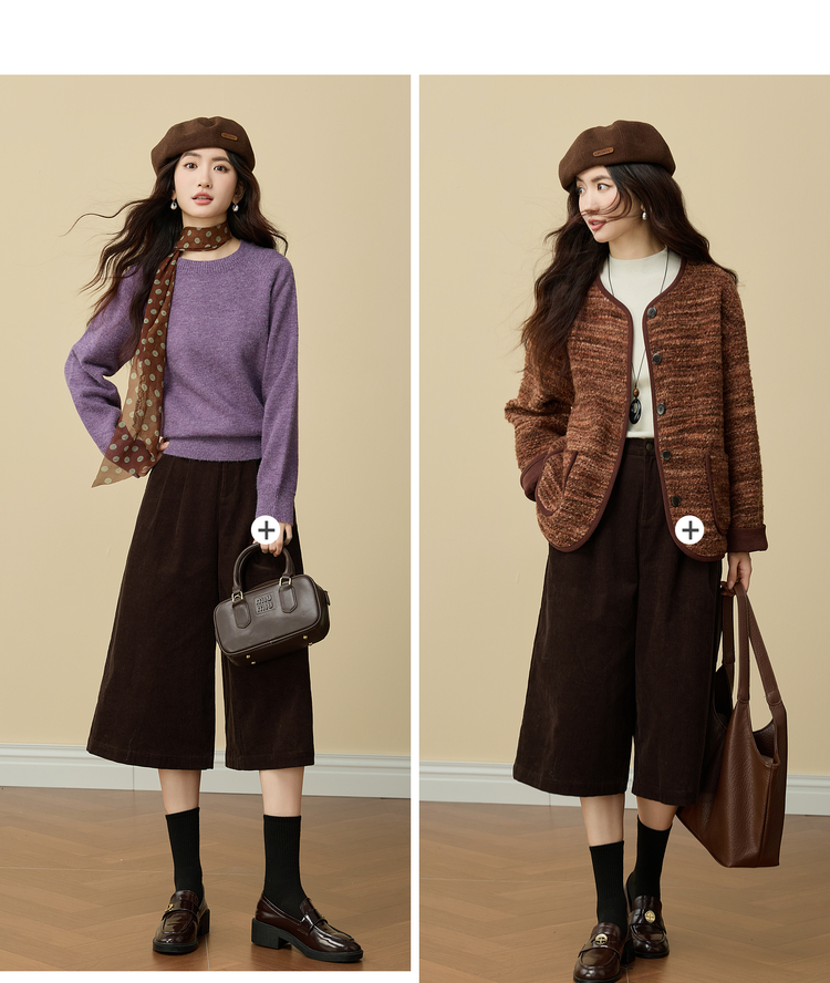 【12/03新品】熙世界复古灯芯绒七分阔腿裤女秋冬加厚遮胯显瘦宽松直筒休闲裤子
