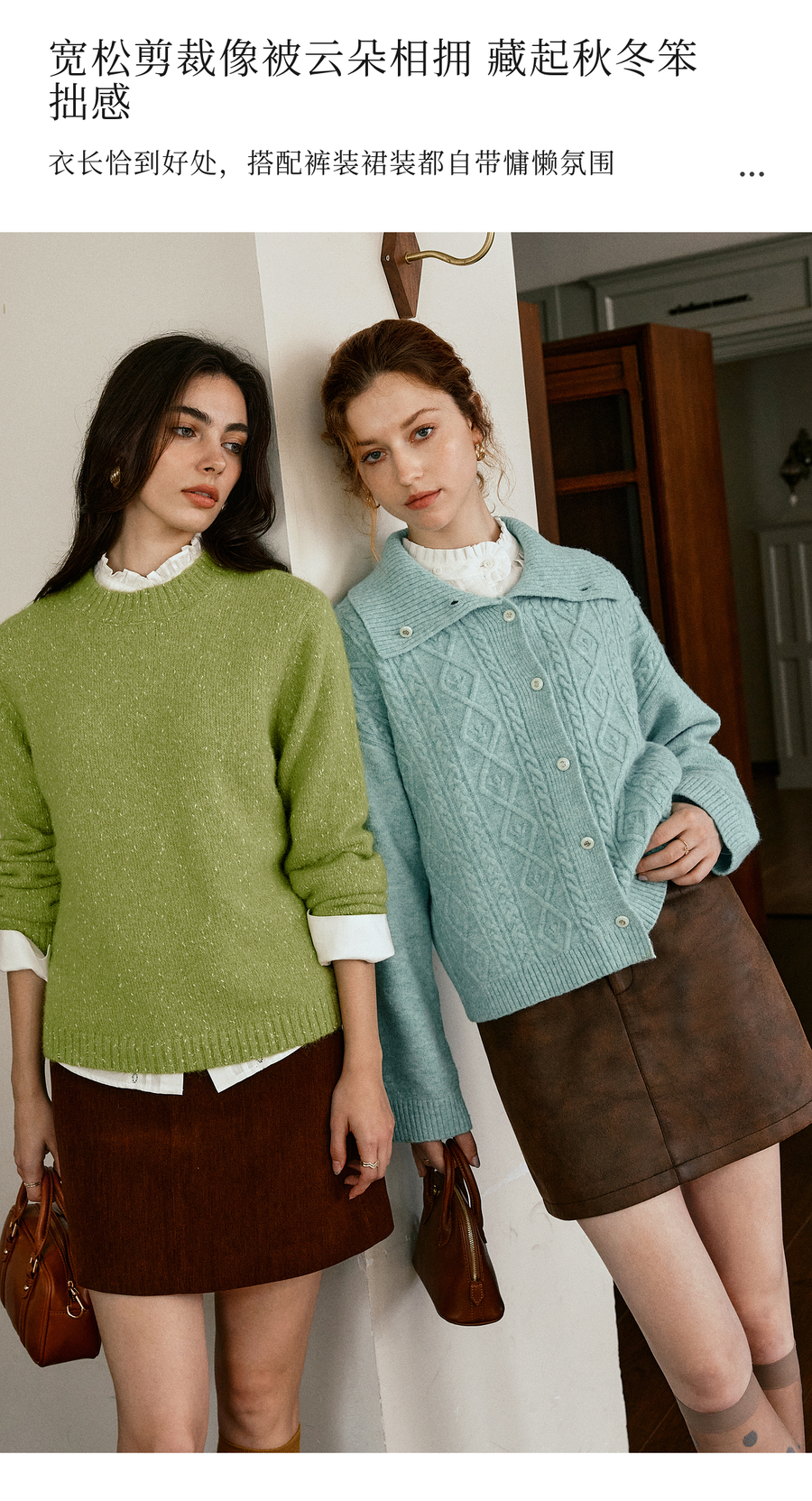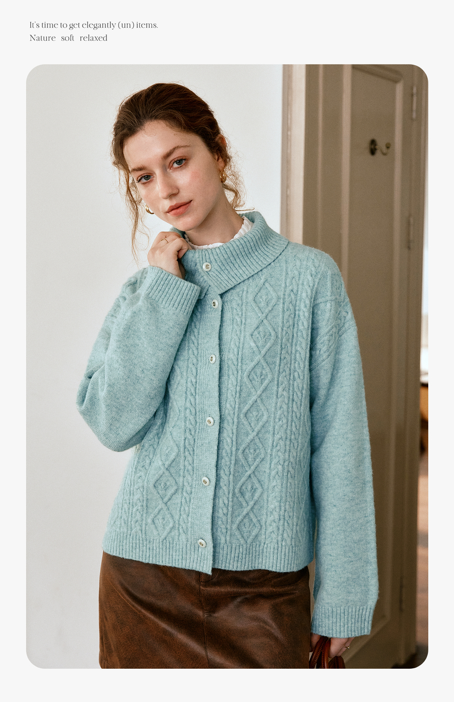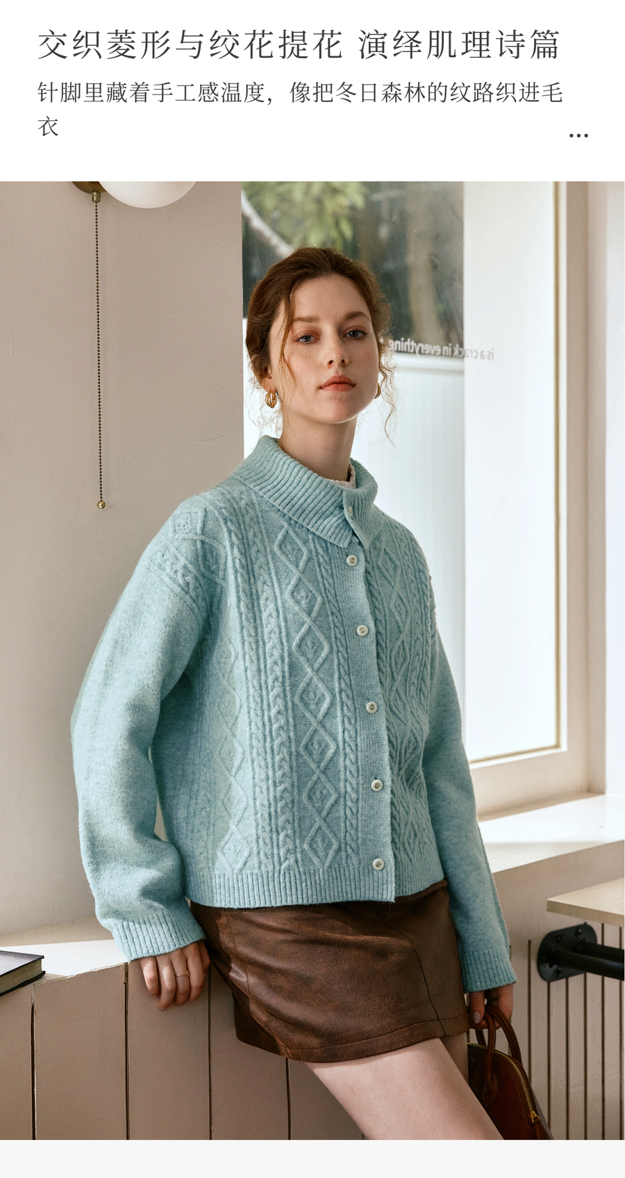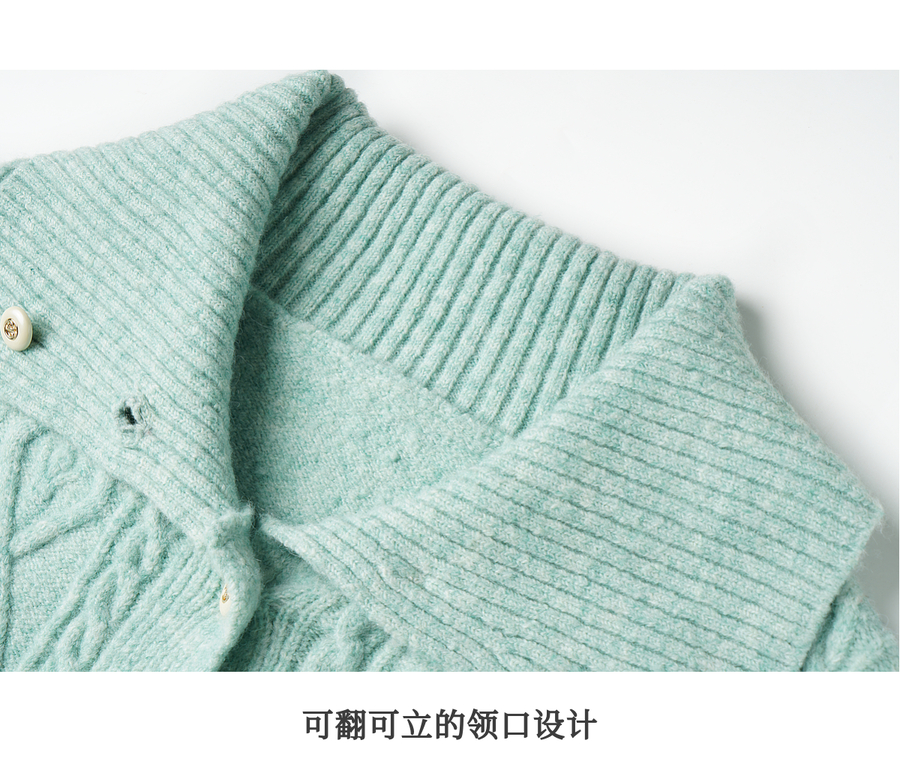 OLrain欧芮儿2025新款秋季设计感翻领麻花毛衣开衫慵懒羊毛上衣女