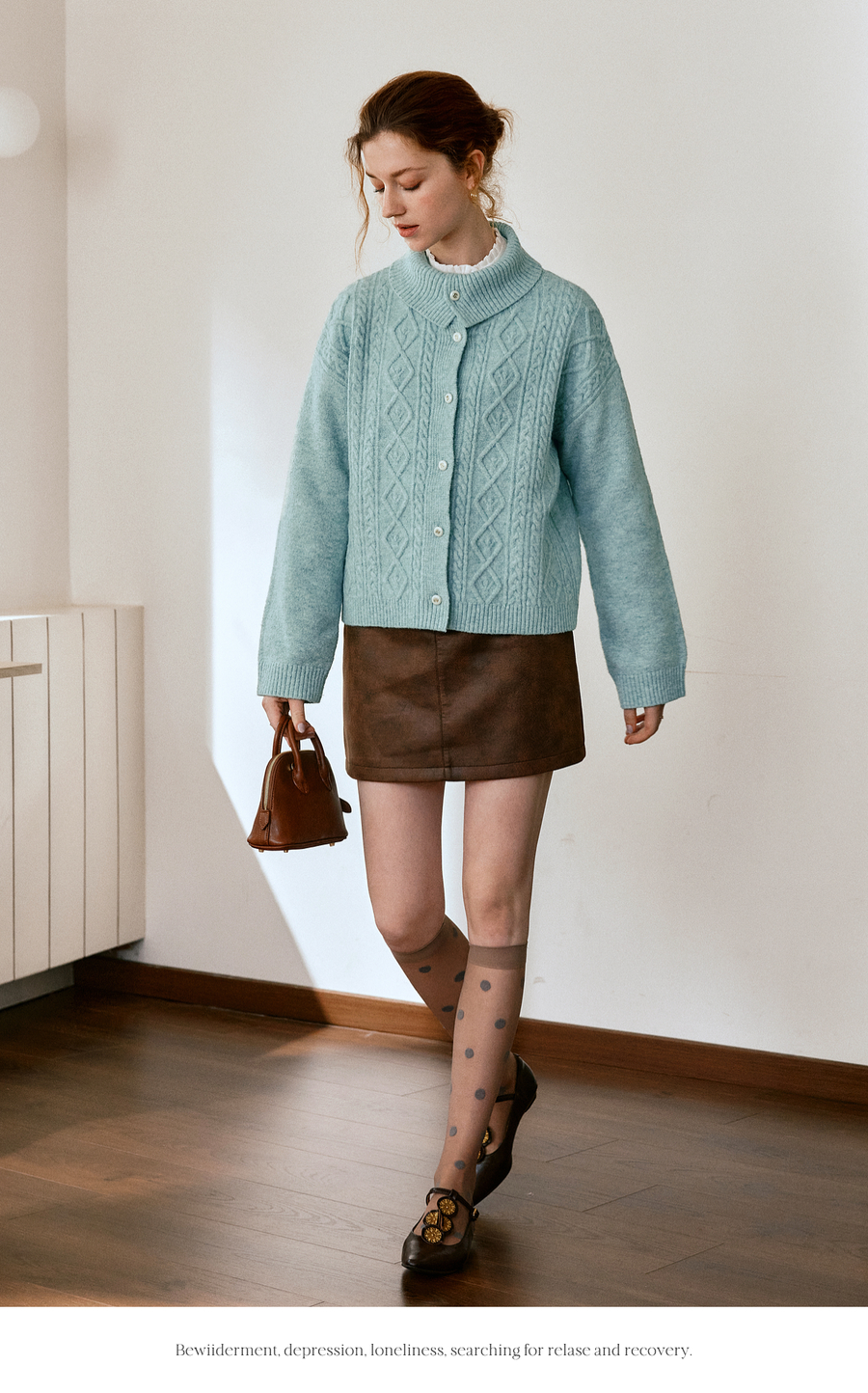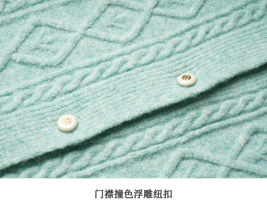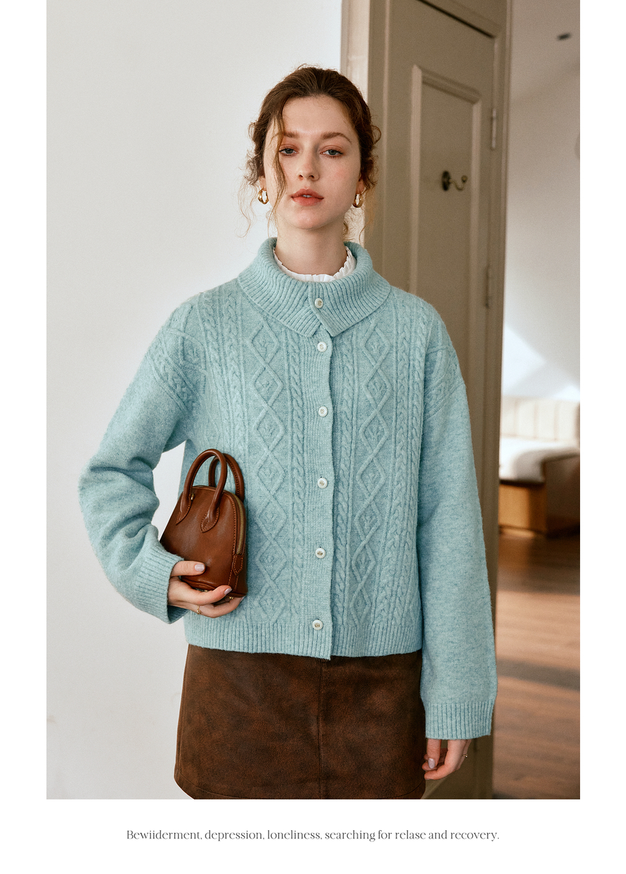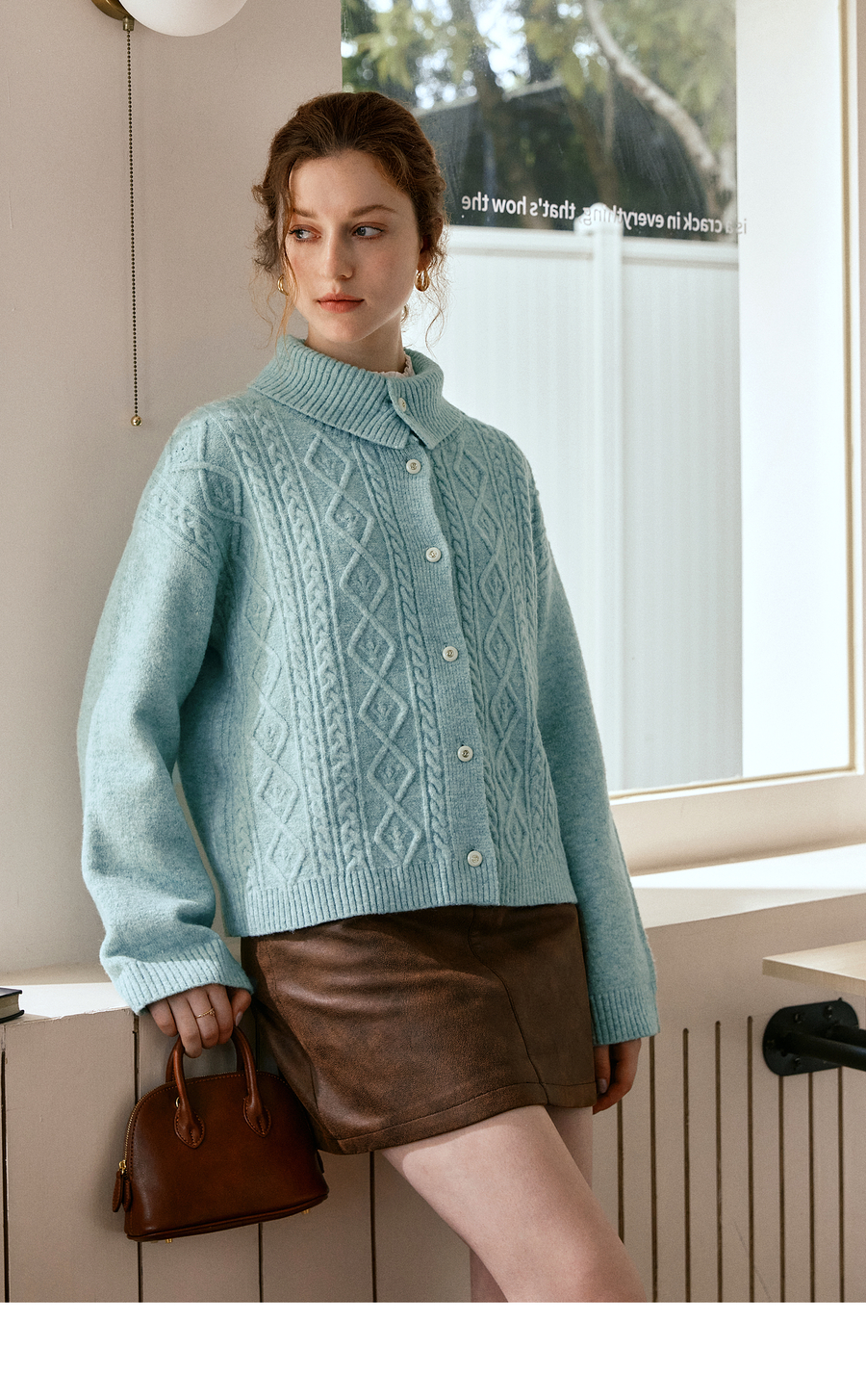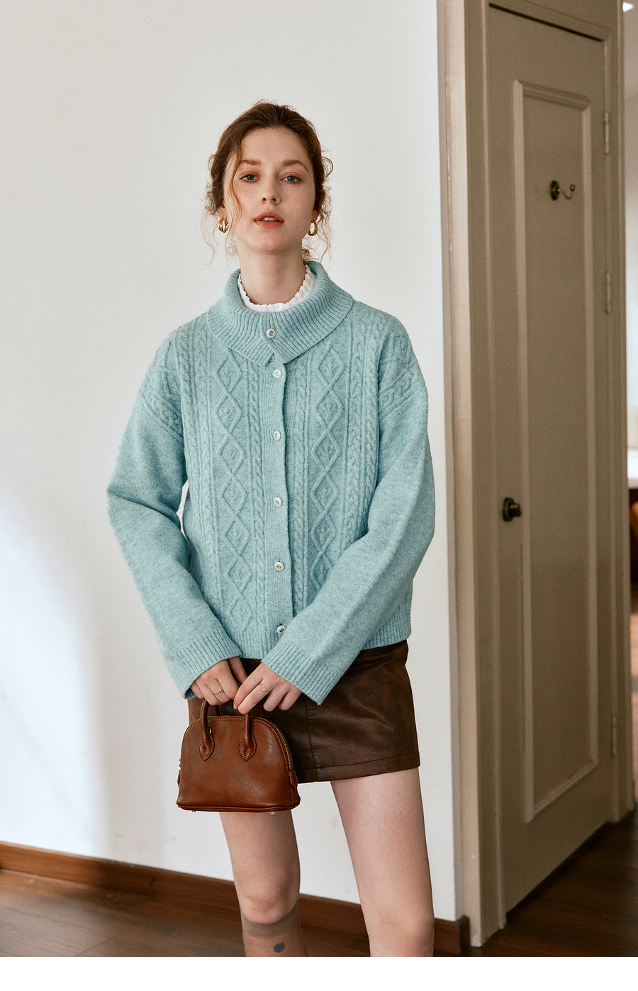 OLrain欧芮儿2025新款秋季设计感翻领麻花毛衣开衫慵懒羊毛上衣女
