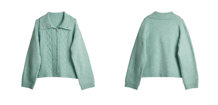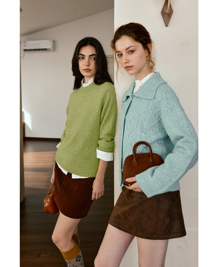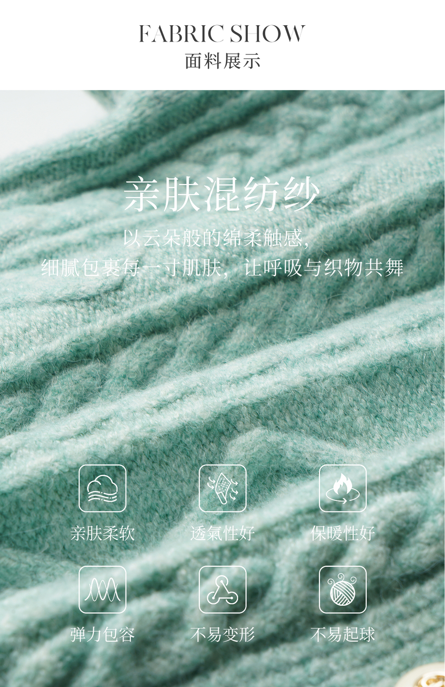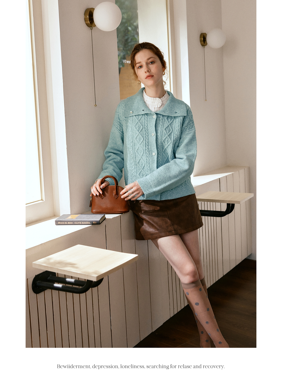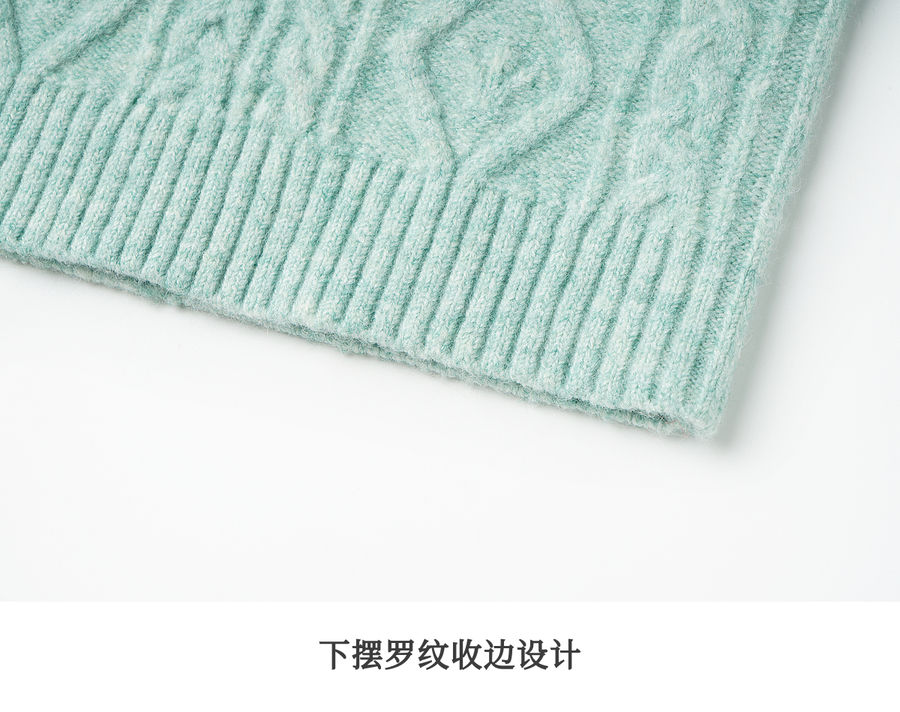 OLrain欧芮儿2025新款秋季设计感翻领麻花毛衣开衫慵懒羊毛上衣女