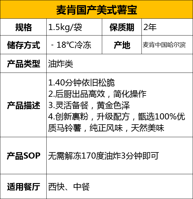 麦肯国产美式薯宝(1000008871)1.5kg薯制冷冻半成品薯球薯块西餐厅商用油炸小吃